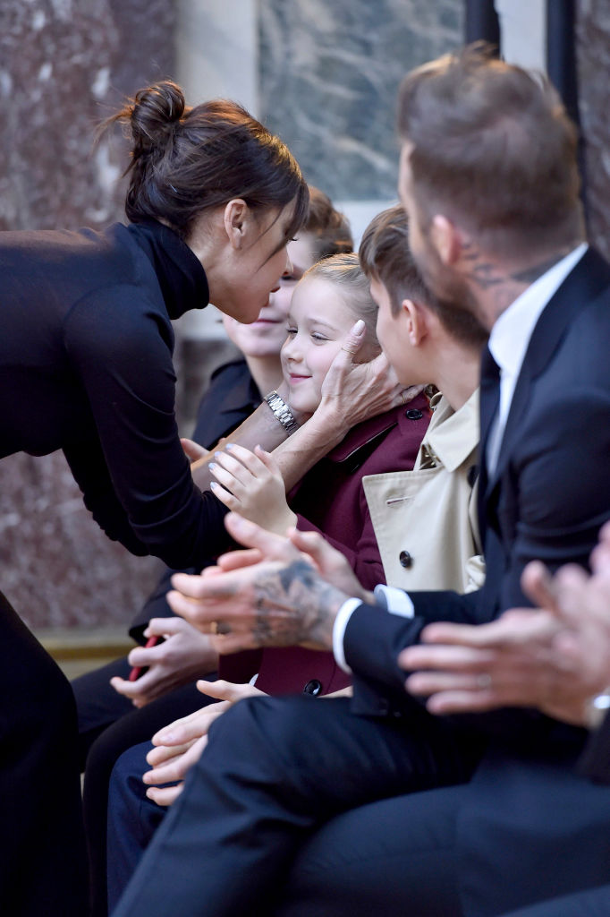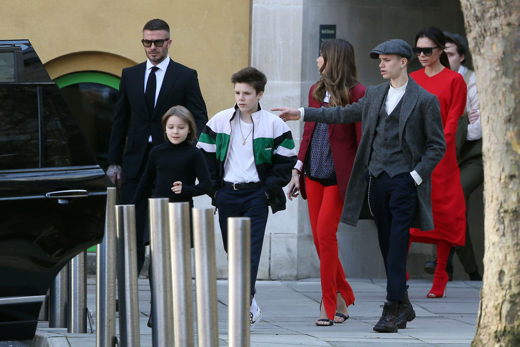 一家人在Victoria Beckham同名品牌的時裝展完結後一同回家。