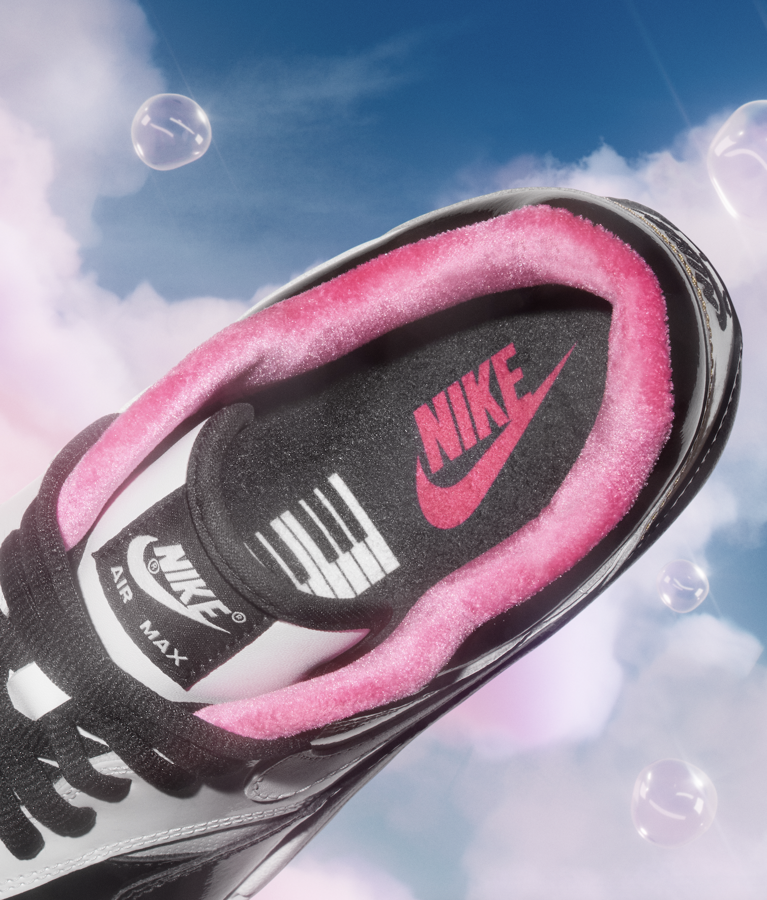將音樂元素結合球鞋的聯乘系列,從15年前就已展開。適逢品牌創立 18 週年,PHANTACi 帶著獨特靈感創作 Nike Air Max,將鋼琴的優雅與力量,將其融入 Air Max 1,再度呈現傳奇「The Grand Piano」Air Max 1。鞋款運用對比色調,白色鞋身襯黑色細節,就像鋼琴的黑白鍵;漆皮材質還原鋼琴烤漆質感;天鵝絨內襯,讓我們摸上去質感就像鋼琴防塵布,舒適創新。