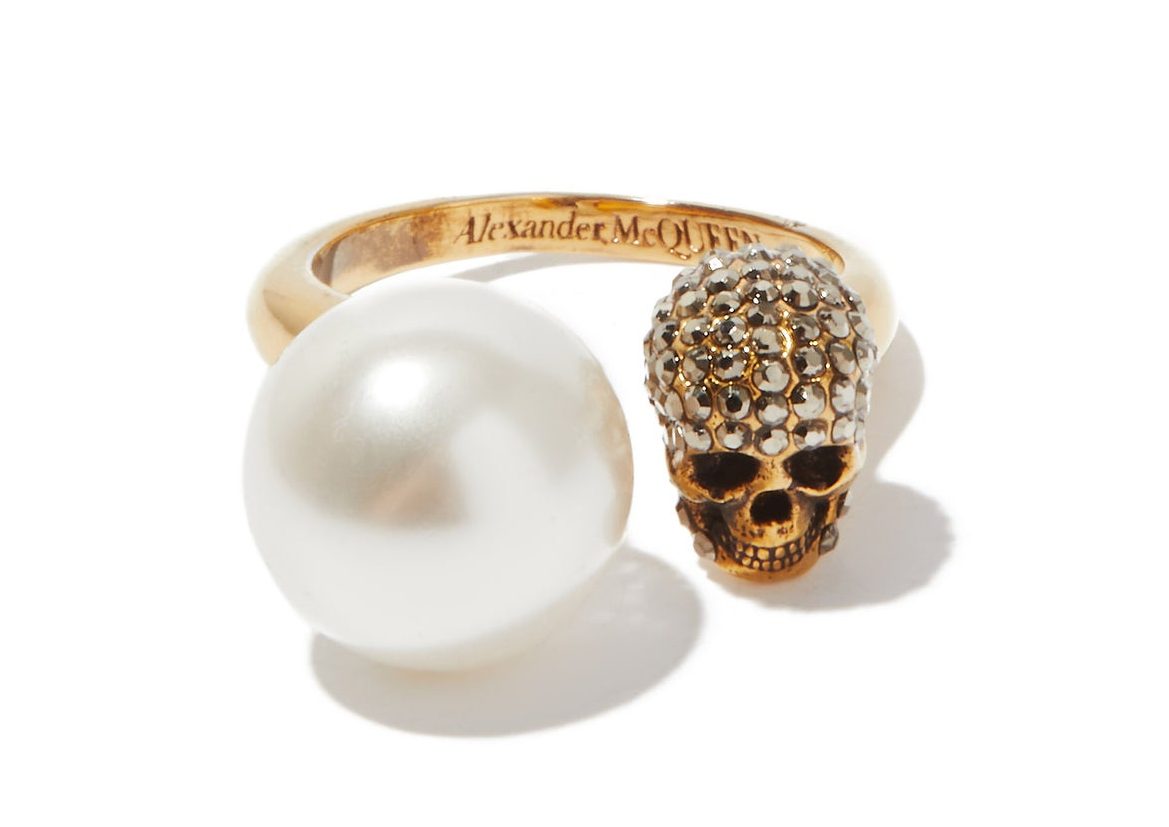 Faux pearl and skull ring, Alexander Mcqueen $2,410