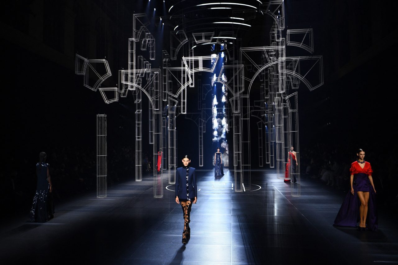 Models present creations by Fendi during the Spring-Summer 2022 Haute Couture collection fashion show in Paris on January 27, 2022. (Photo by Christophe ARCHAMBAULT / AFP) (Photo by CHRISTOPHE ARCHAMBAULT/AFP via Getty Images)