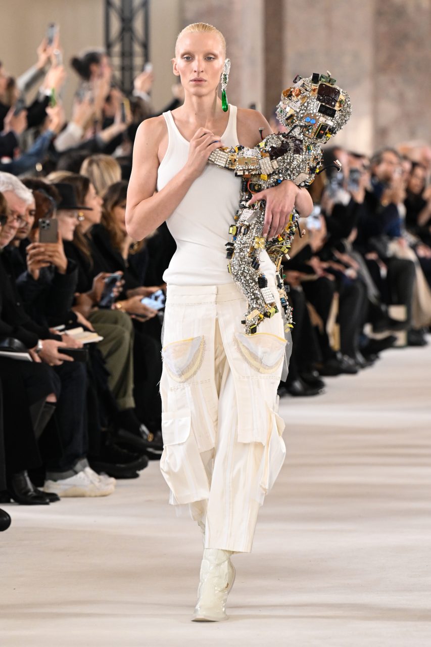 Model on the runway at Schiaparelli Couture Spring 2024 as part of Paris Couture Fashion Week held at Petit Palais on January 22, 2024 in Paris, France. (Photo by Giovanni Giannoni/WWD via Getty Images)