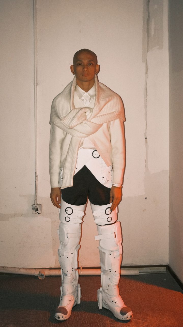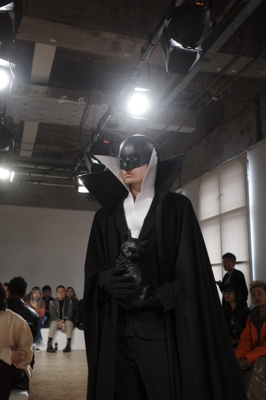 本季系列以未來主義正裝為設計核心,設計師周翔宇透過優雅的套裝、禮服和男士正裝展現出沉穩莊重的狀態,經典而具備前瞻性。從幾何面甲、戲劇面具,至高聳至頭頂的德古拉式領口,本季設計擷取不同時代的意符,組合構築儀式感與神秘性,呈現Xander Zhou Pro超現代浪漫主義的創作方法論。