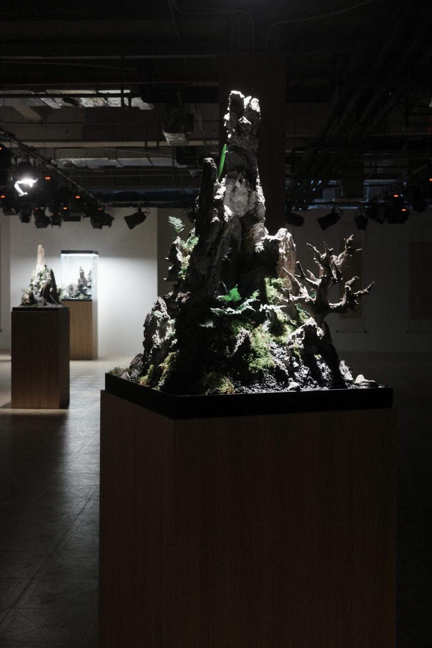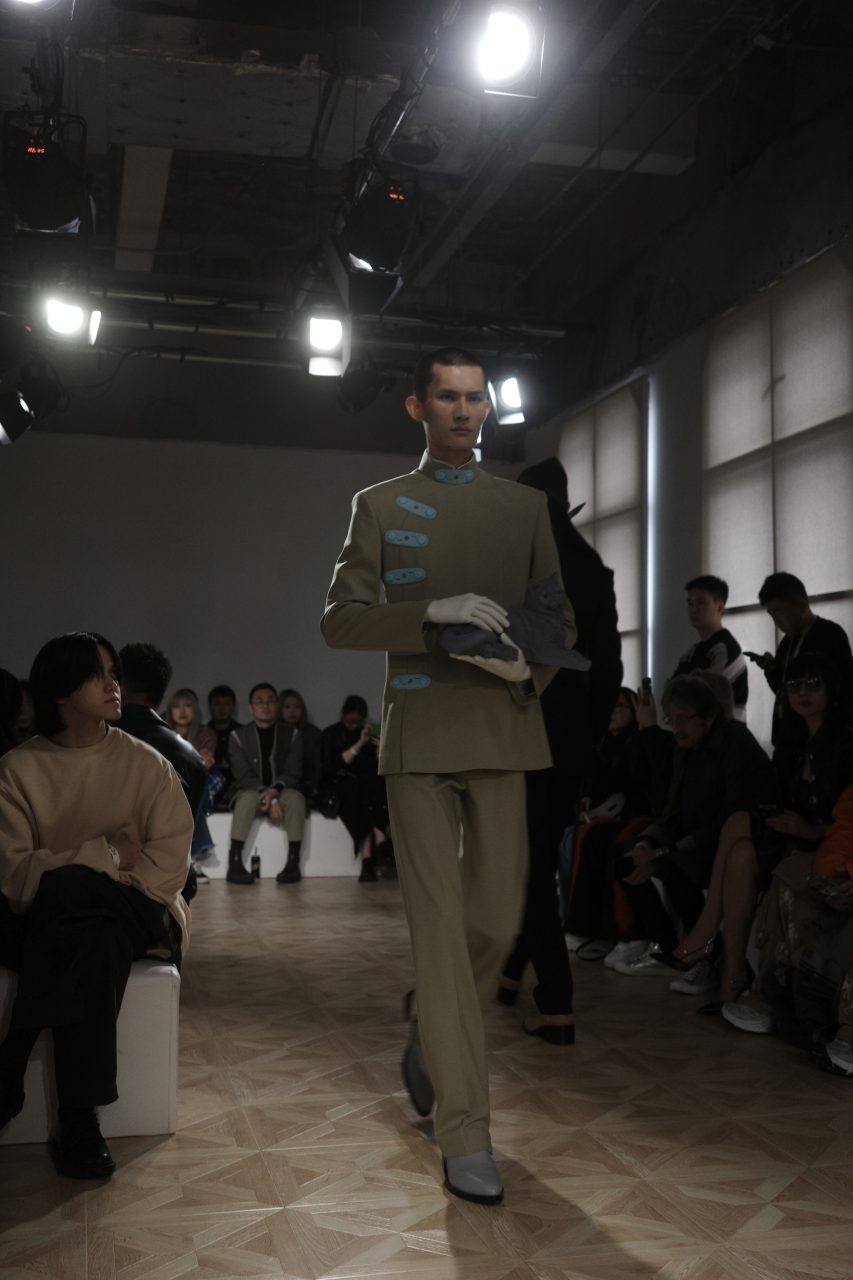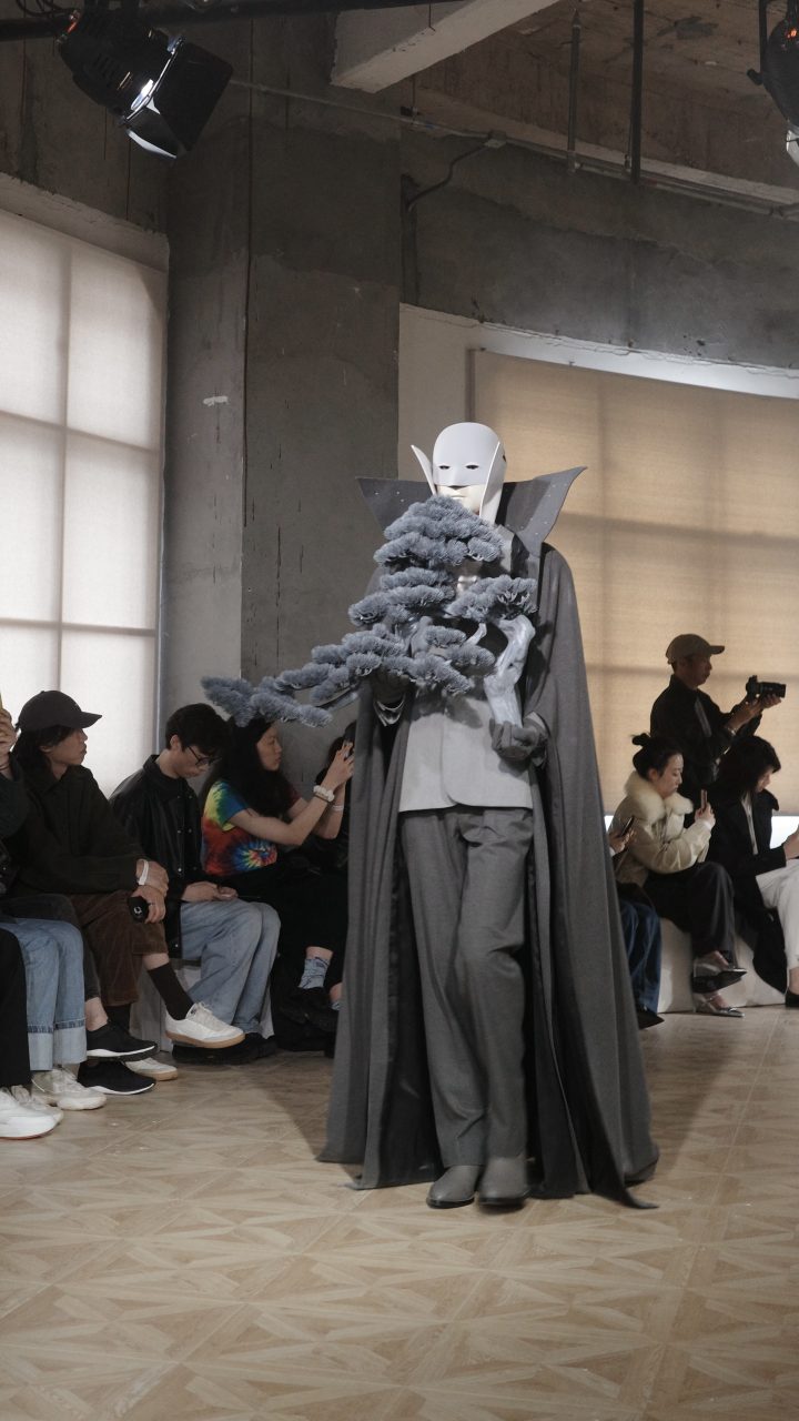 本季時裝展在洛克·外灘源中實大樓發布,由古典畫軸劃分的展場空間內,模特兒有如宮廷畫家張僧繇筆下的神龍,從畫中世界踏入現實。太空隕石化作中式園林的山石造景,其上焚香繚繞,如煙似霧。