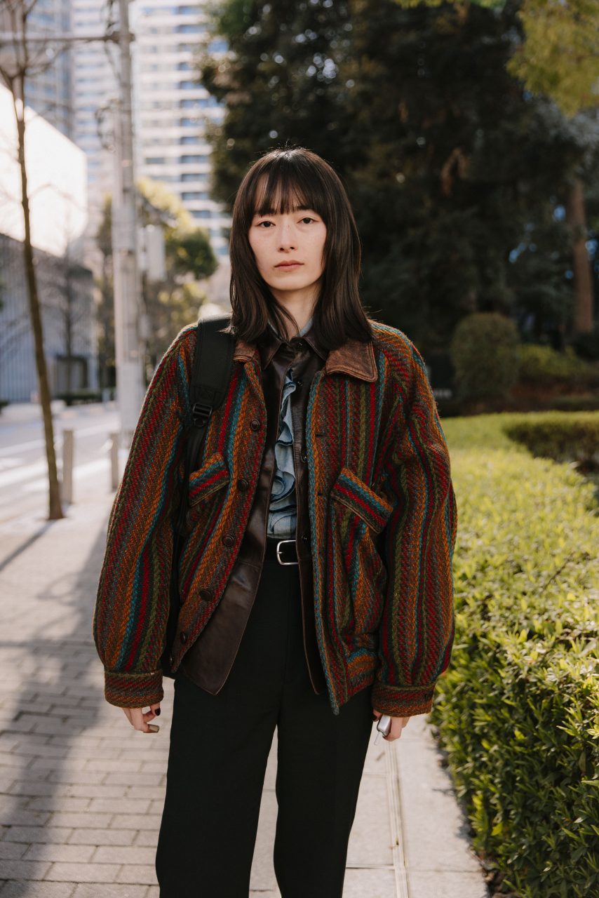 鑑於當地的氣溫稍低,東京的潮人們喜歡穿著極度重工的外套展現個性,帶有刺繡、珠片、網紗、皮草等特殊材質,營造出獨特的視覺效果。重工外套不僅能夠成為整體造型的焦點,還能展現穿搭者對於細節的講究和創新。