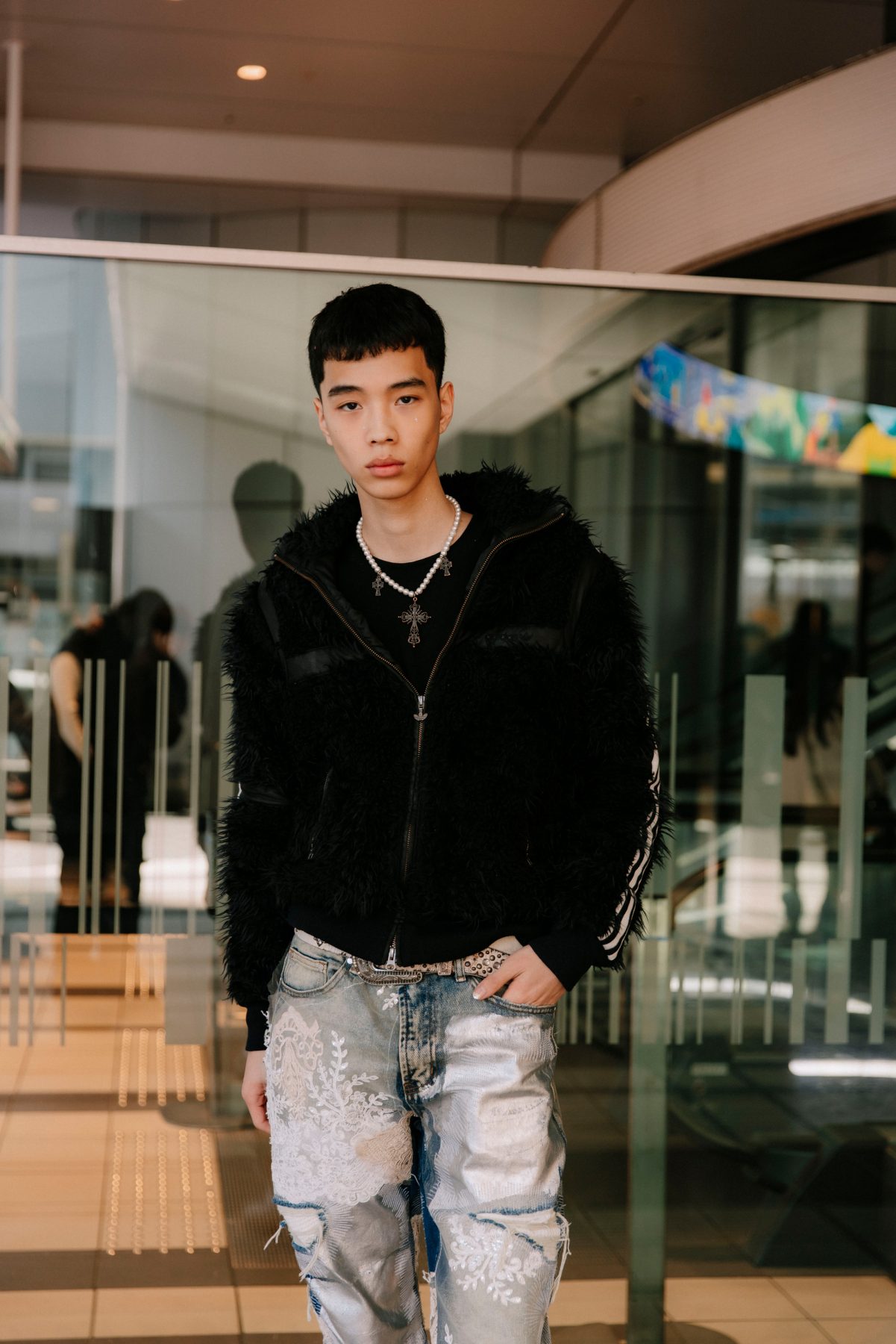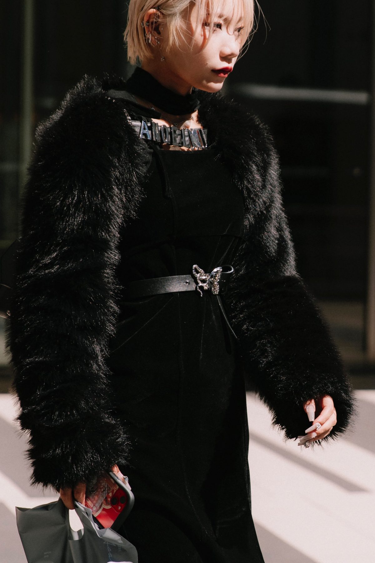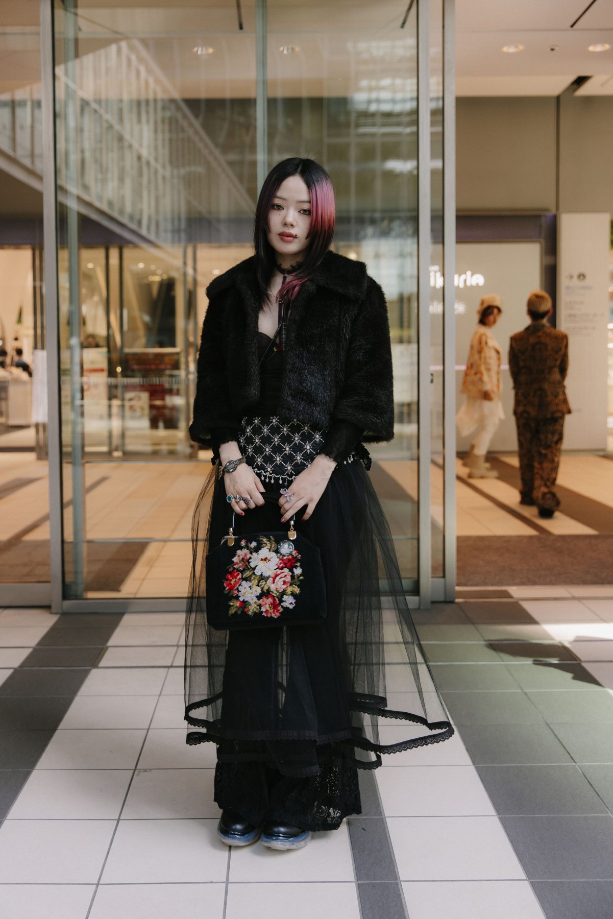 鑑於當地的氣溫稍低,東京的潮人們喜歡穿著極度重工的外套展現個性,帶有刺繡、珠片、網紗、皮草等特殊材質,營造出獨特的視覺效果。重工外套不僅能夠成為整體造型的焦點,還能展現穿搭者對於細節的講究和創新。