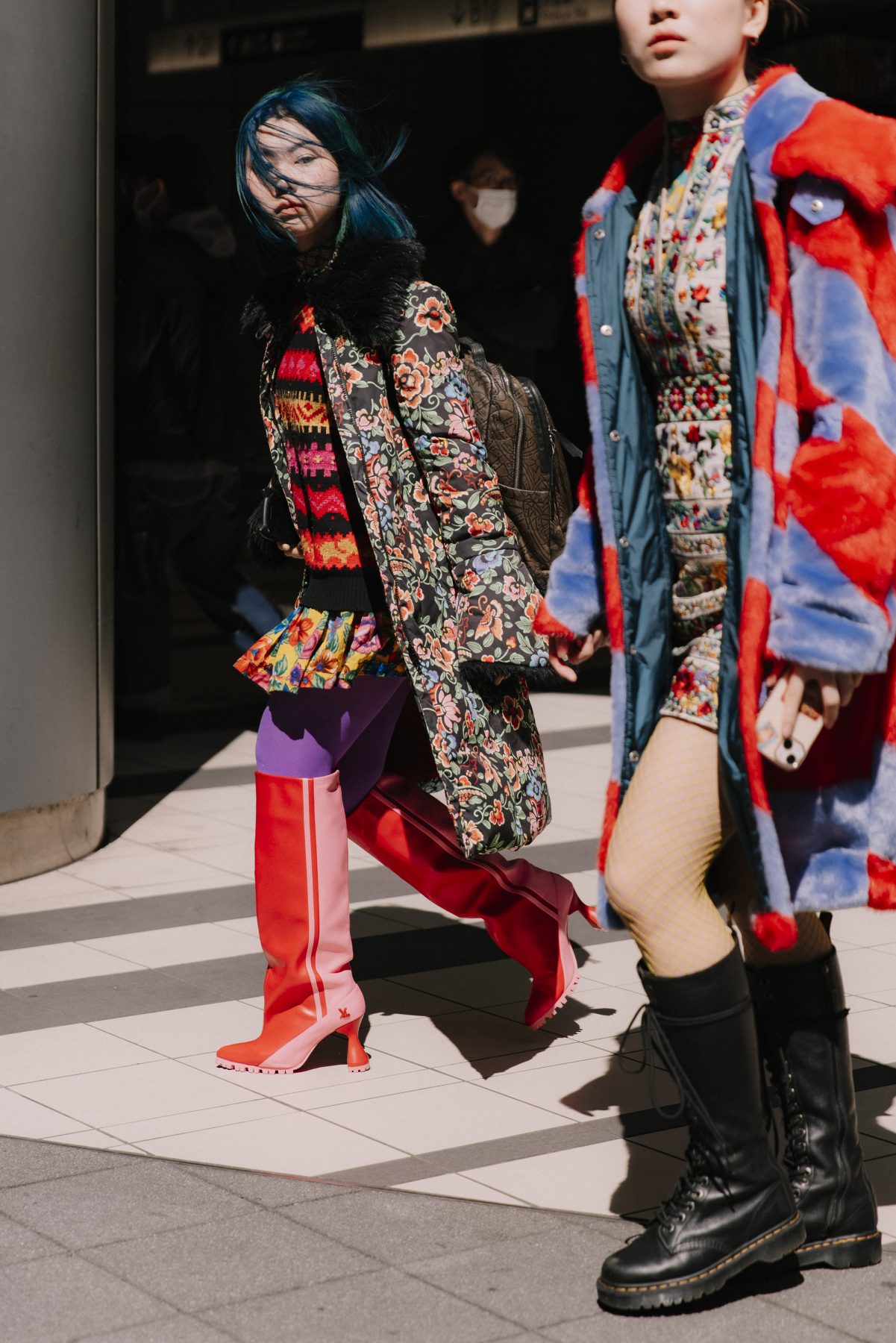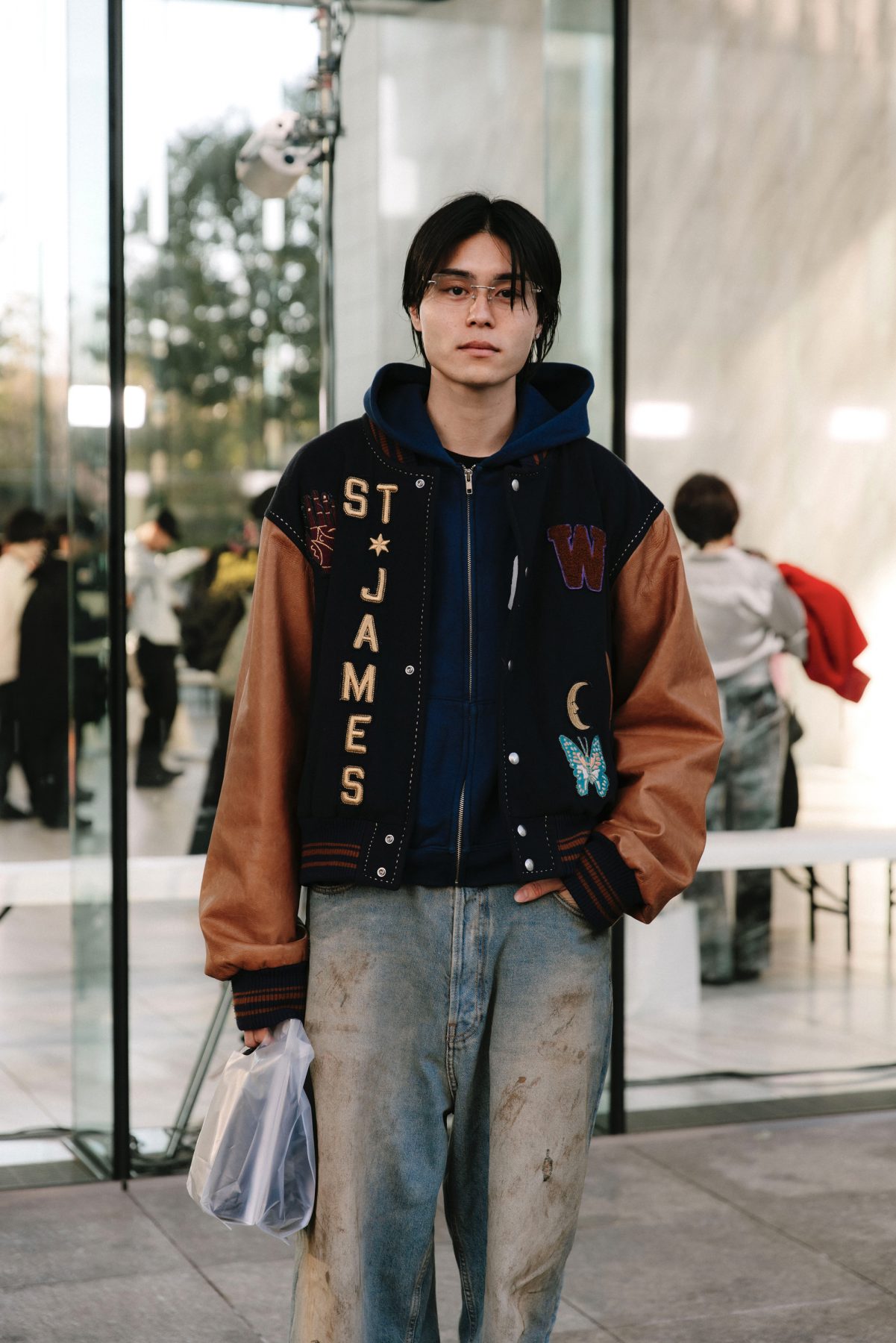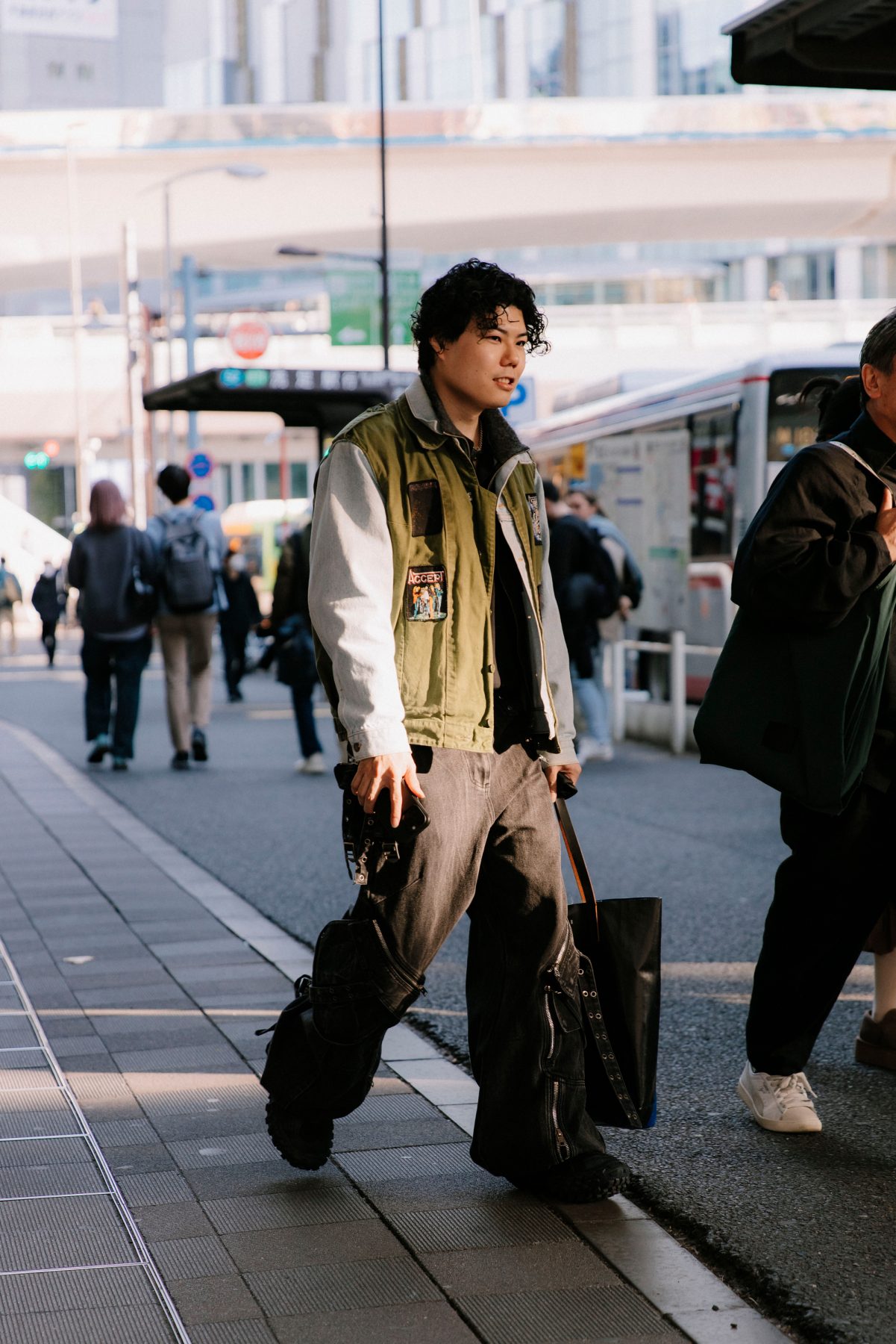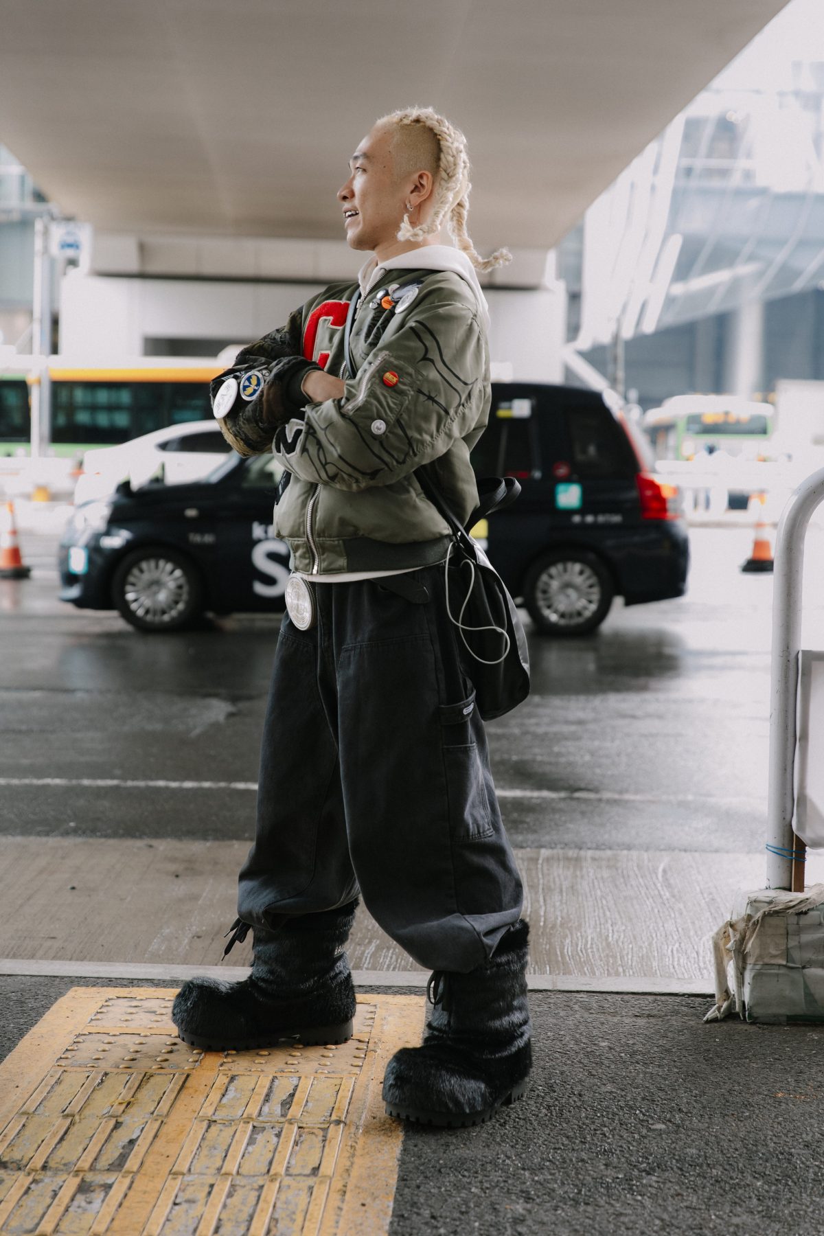 鑑於當地的氣溫稍低,東京的潮人們喜歡穿著極度重工的外套展現個性,帶有刺繡、珠片、網紗、皮草等特殊材質,營造出獨特的視覺效果。重工外套不僅能夠成為整體造型的焦點,還能展現穿搭者對於細節的講究和創新。