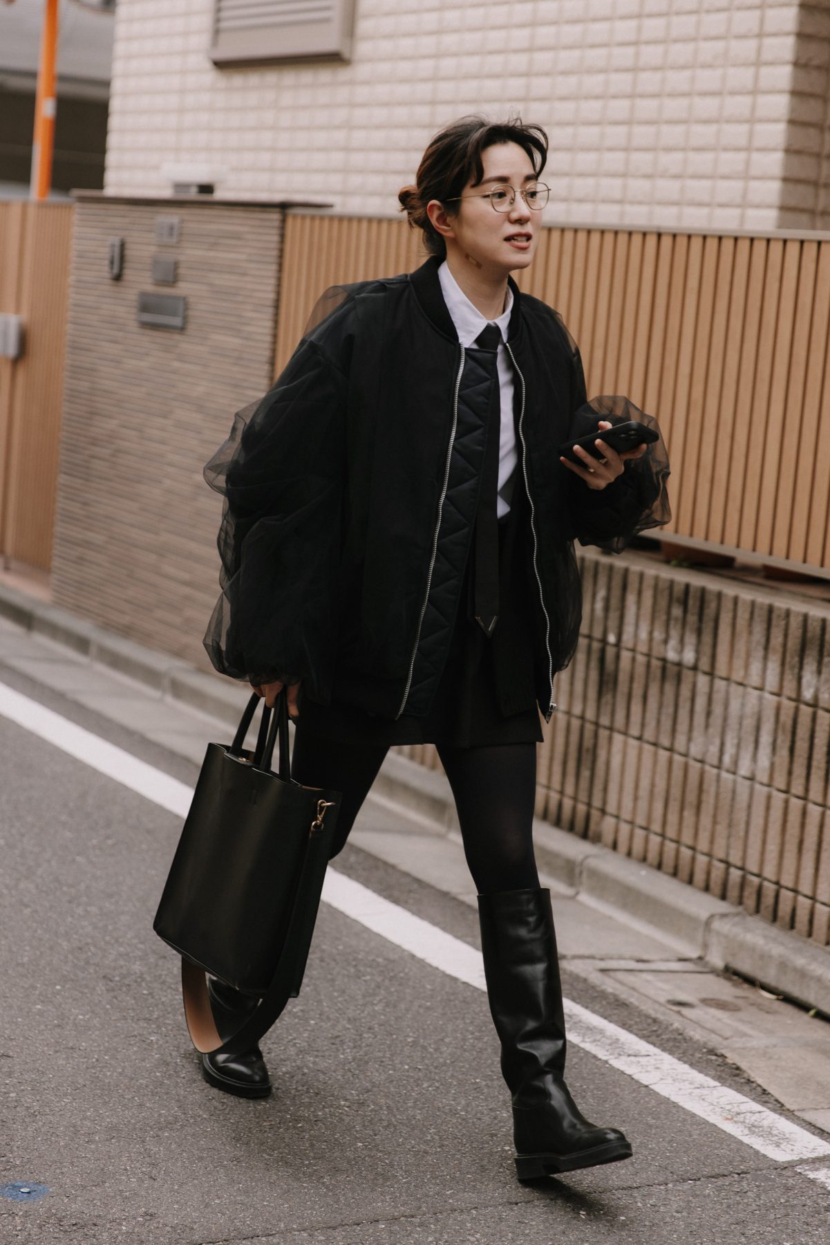 東京的潮人們對於全黑穿搭有一種特殊的偏愛,這種風格展現了他們對於簡約、時尚和個性的獨特理解。全黑穿搭以黑色作為主調,通常選擇不同質地和剪裁的服飾來打造一個整體的黑色造型。在日本街頭,潮人們身穿黑色服飾,如黑色大衣、衛衣或皮衣,這些服飾展現出簡約而流線型的輪廓。搭配上黑色的西裝褲、裙裝或寬鬆的長褲,營造出一種時尚而不失舒適的氛圍。