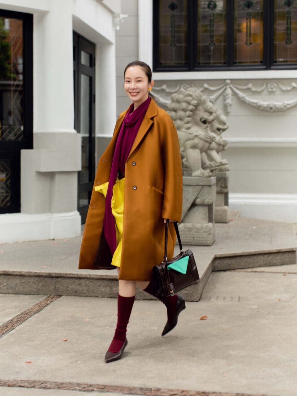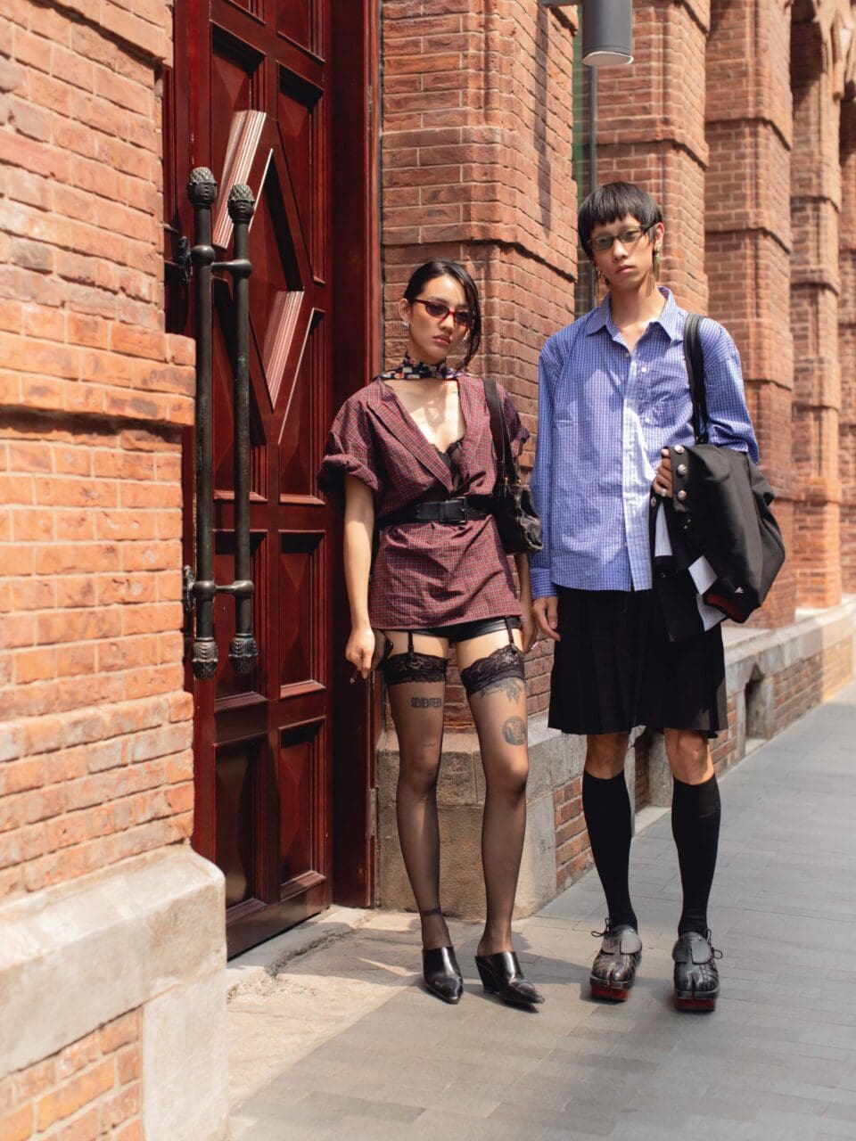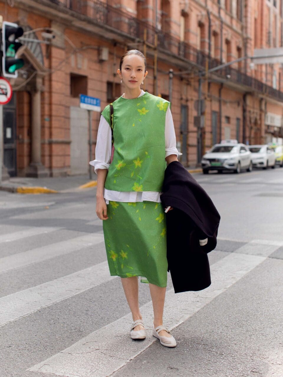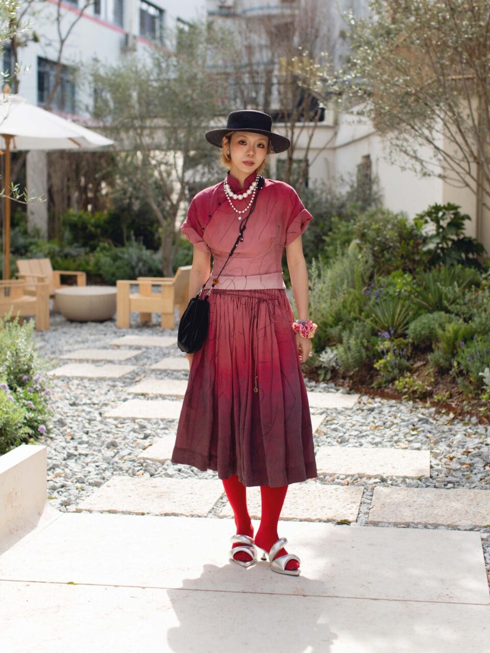自Miu Miu近季系列帶動長襪熱潮後,這一元素在上海街拍中亦有不同演繹。喱士透視襪子搭配瑪莉珍鞋,呈現復古氣息;酒紅色長襪與啡色高跟鞋的組合,則打破正式與休閒的界限,營造優雅舒適氛圍。值得注意的是,上海街拍中的長襪趨勢不再侷限於學院風,而是透過不同材質、圖案與搭配方式,探索更個性化的穿搭語境。