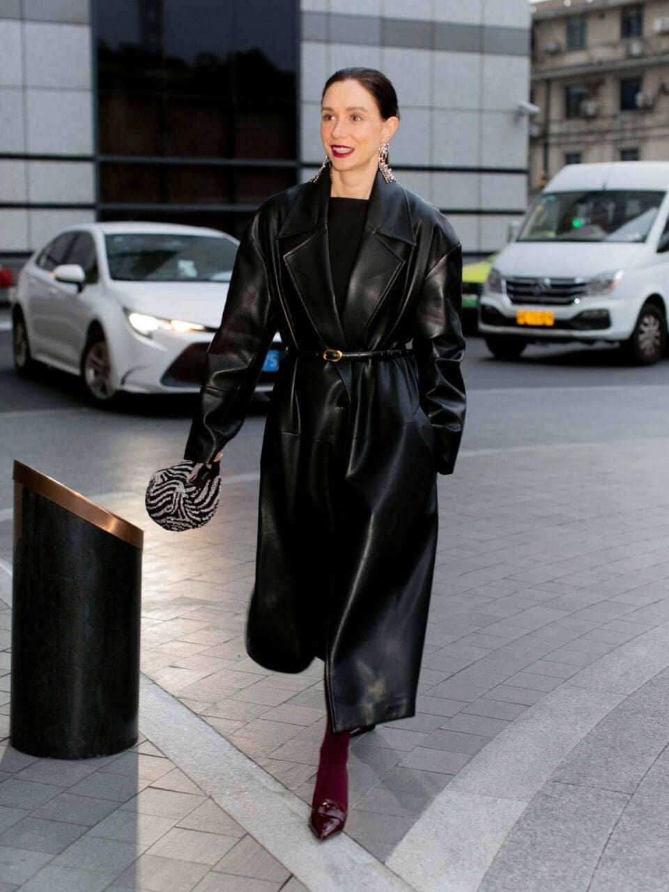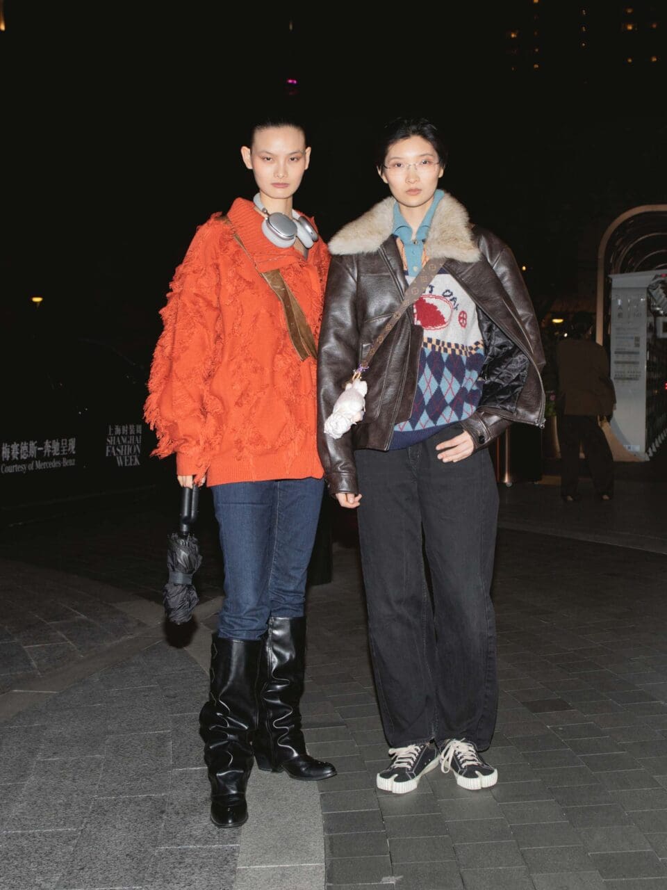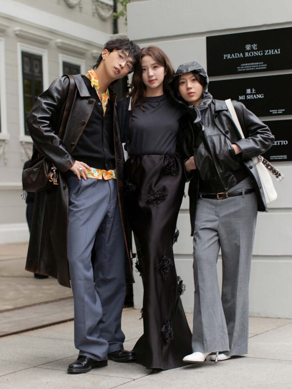皮革向來是秋冬衣櫥的關鍵元素,而今季上海時裝週的街拍造型則更強調剪裁與結構感。長版皮革大衣營造強烈氣場,搭配寬褲或流線型裙裝,展現俐落輪廓;短版皮革外套則與Crop Top和高腰牛仔褲組合,突顯身形比例。此外,啡色皮革外套與幾何圖案毛衣的搭配,亦讓Preppy Style呈現更高級的視覺效果。本季的皮革趨勢不再只是關於「酷感」,而是藉由不同材質處理與搭配方式,塑造出更具層次的風格變化。