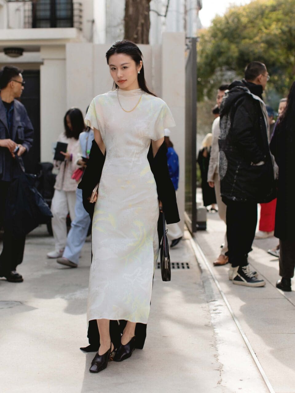 本季街頭造型中,新中式風格成為最受矚目的趨勢之一!傳統剪裁經過當代改良,以更為輕鬆的方式融入日常穿搭,例如盤扣外套搭配寬鬆西褲,旗袍式上衣與牛仔單品混搭,或以紅色點綴黑白基調,在細節中體現東方韻味。與過往略顯繁複的設計不同,今年的新中式趨勢更注重簡約與現代感,展現文化自信的同時,亦呼應當下時尚領域對實穿性的追求。