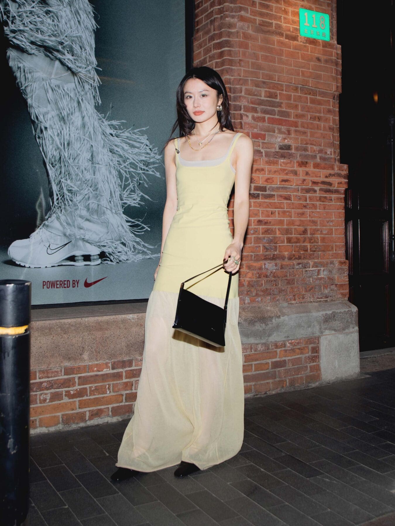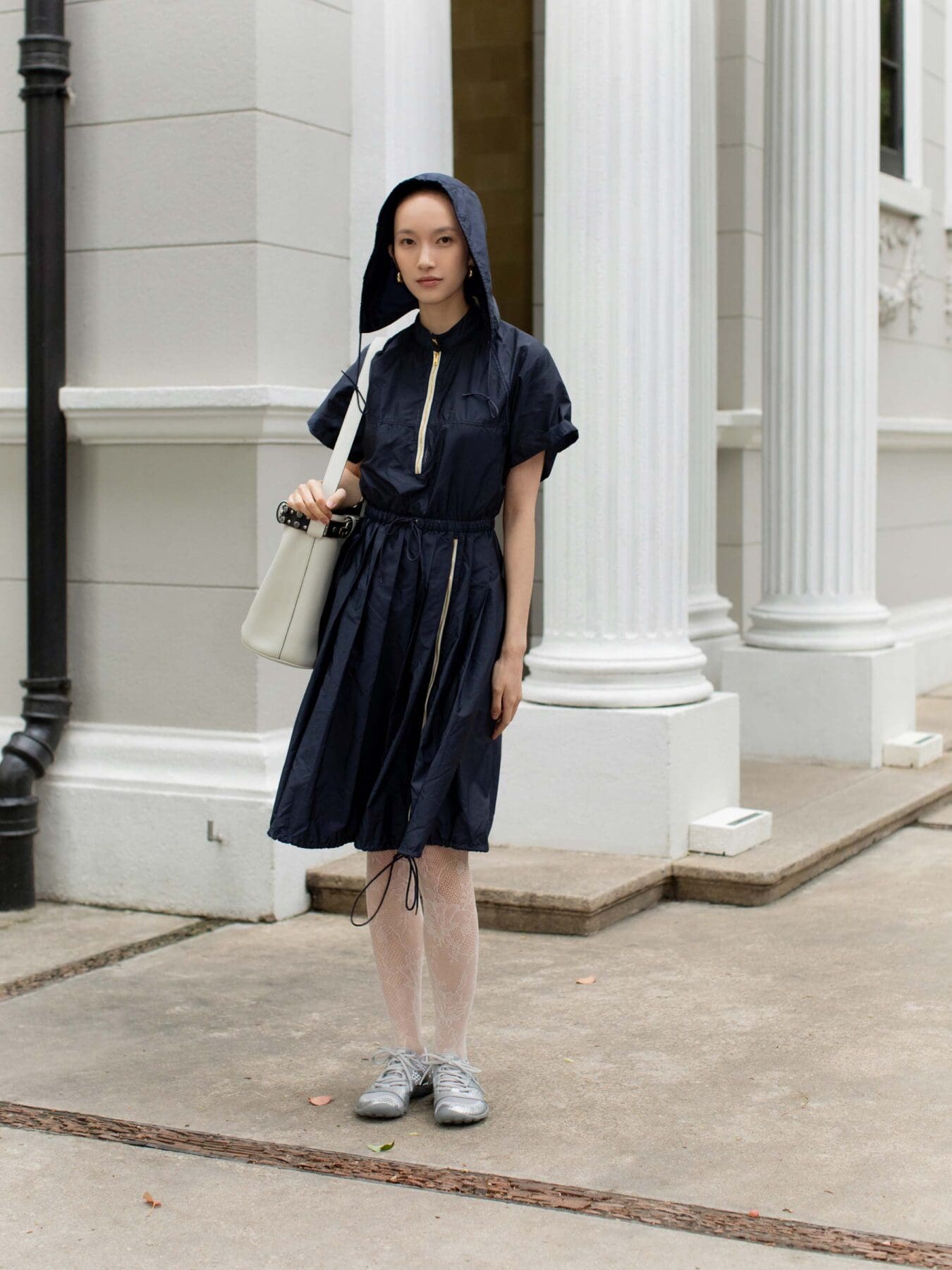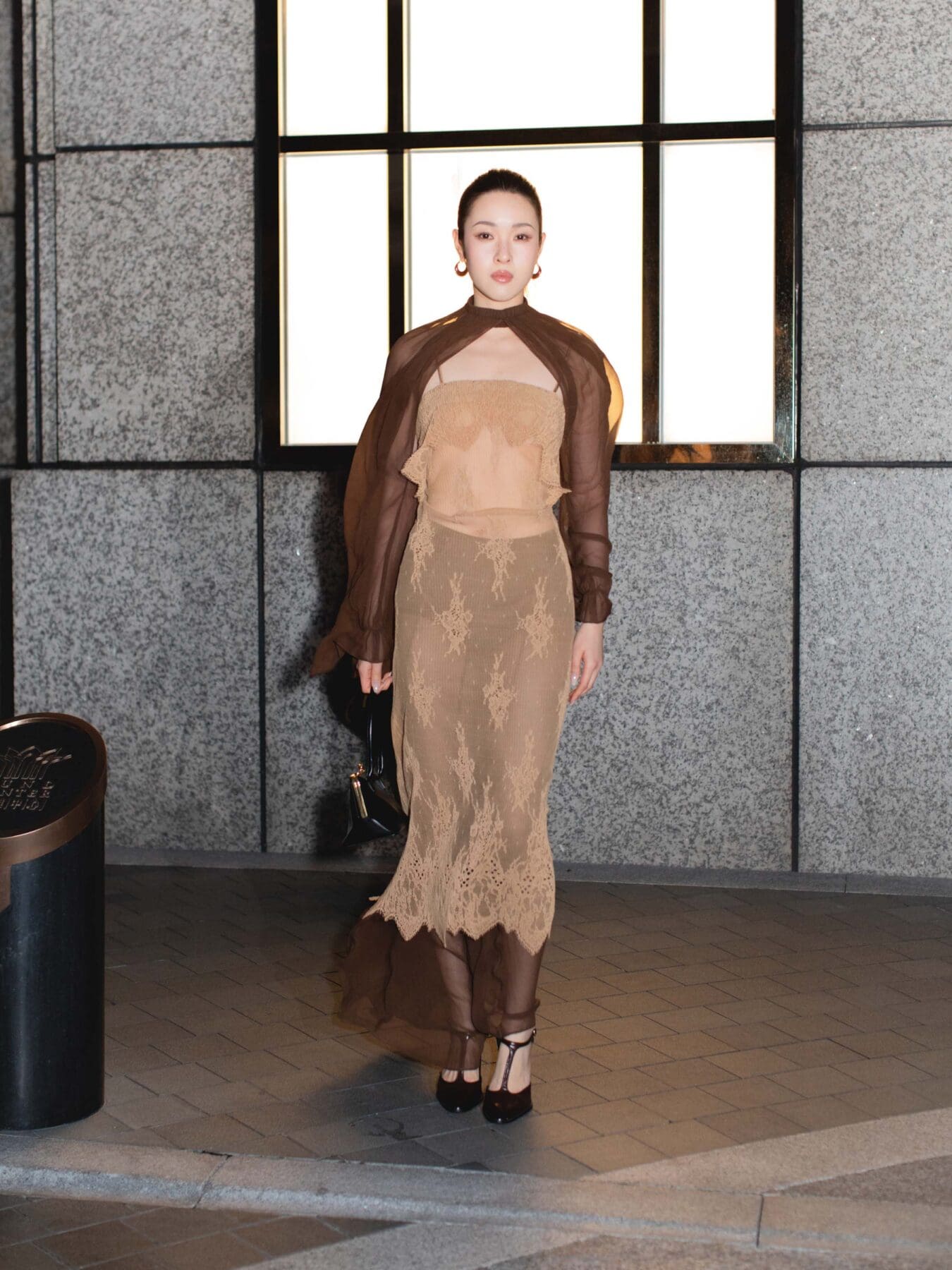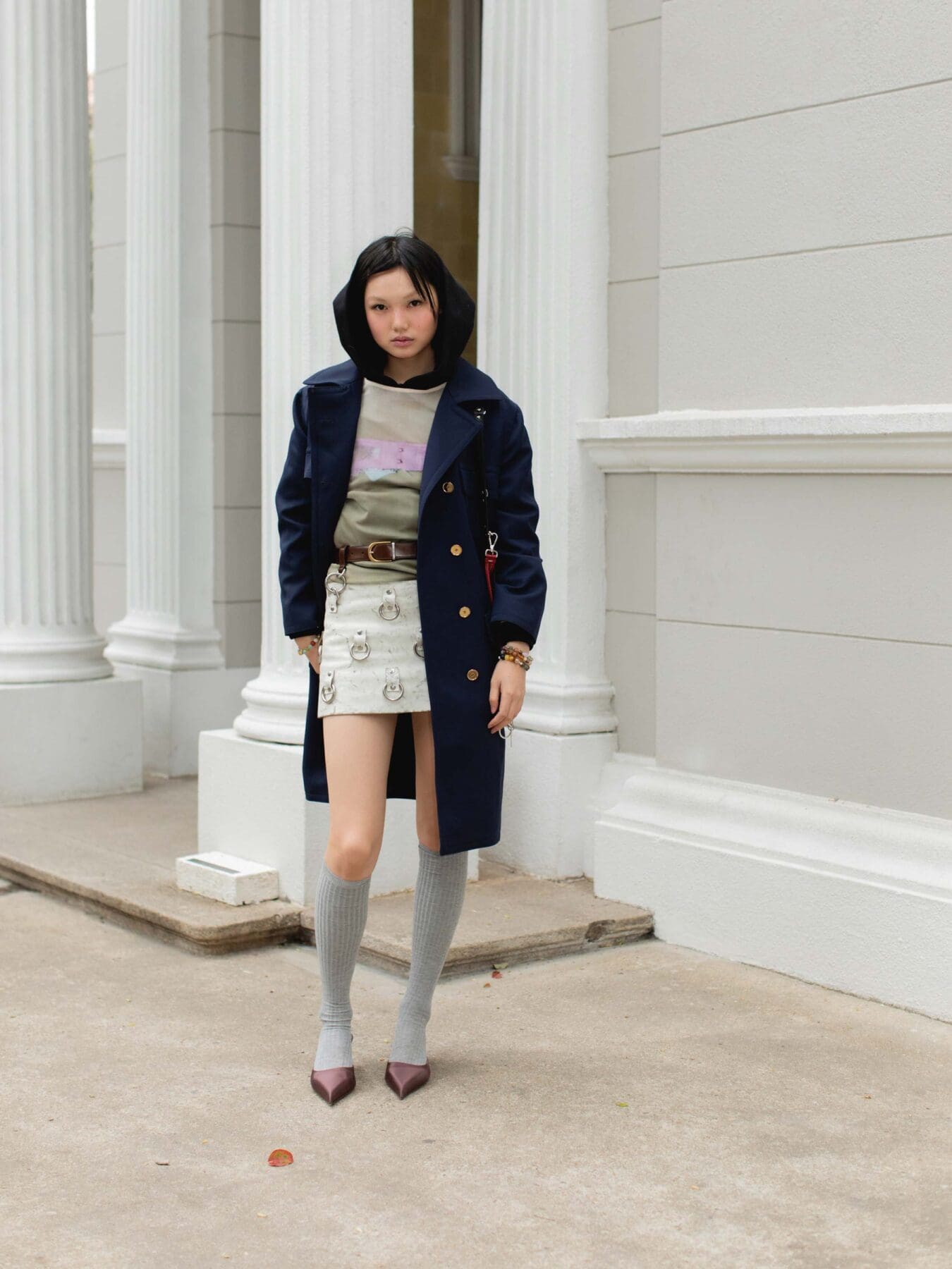 自Miu Miu近季系列帶動長襪熱潮後,這一元素在上海街拍中亦有不同演繹。喱士透視襪子搭配瑪莉珍鞋,呈現復古氣息;酒紅色長襪與啡色高跟鞋的組合,則打破正式與休閒的界限,營造優雅舒適氛圍。值得注意的是,上海街拍中的長襪趨勢不再侷限於學院風,而是透過不同材質、圖案與搭配方式,探索更個性化的穿搭語境。