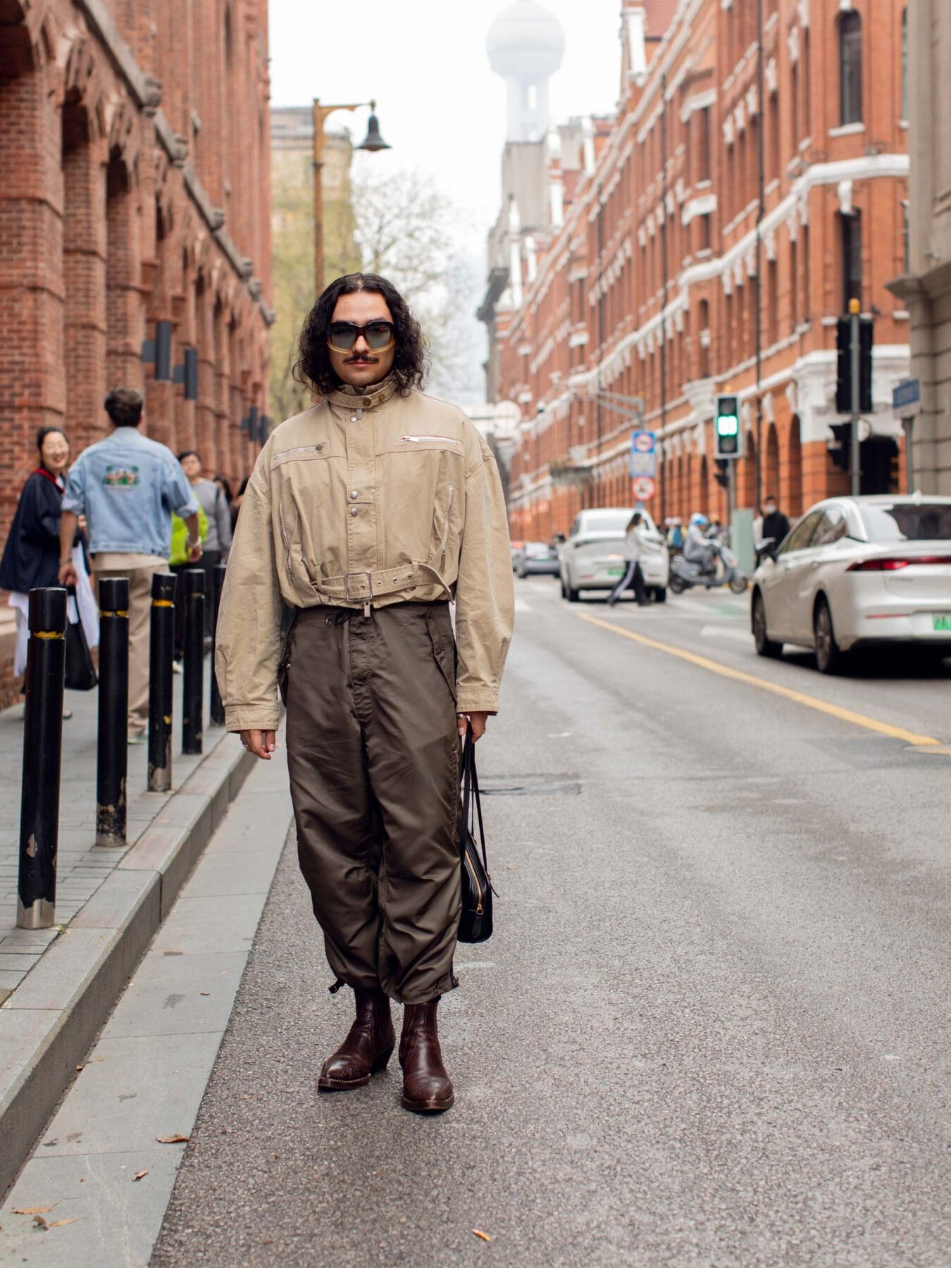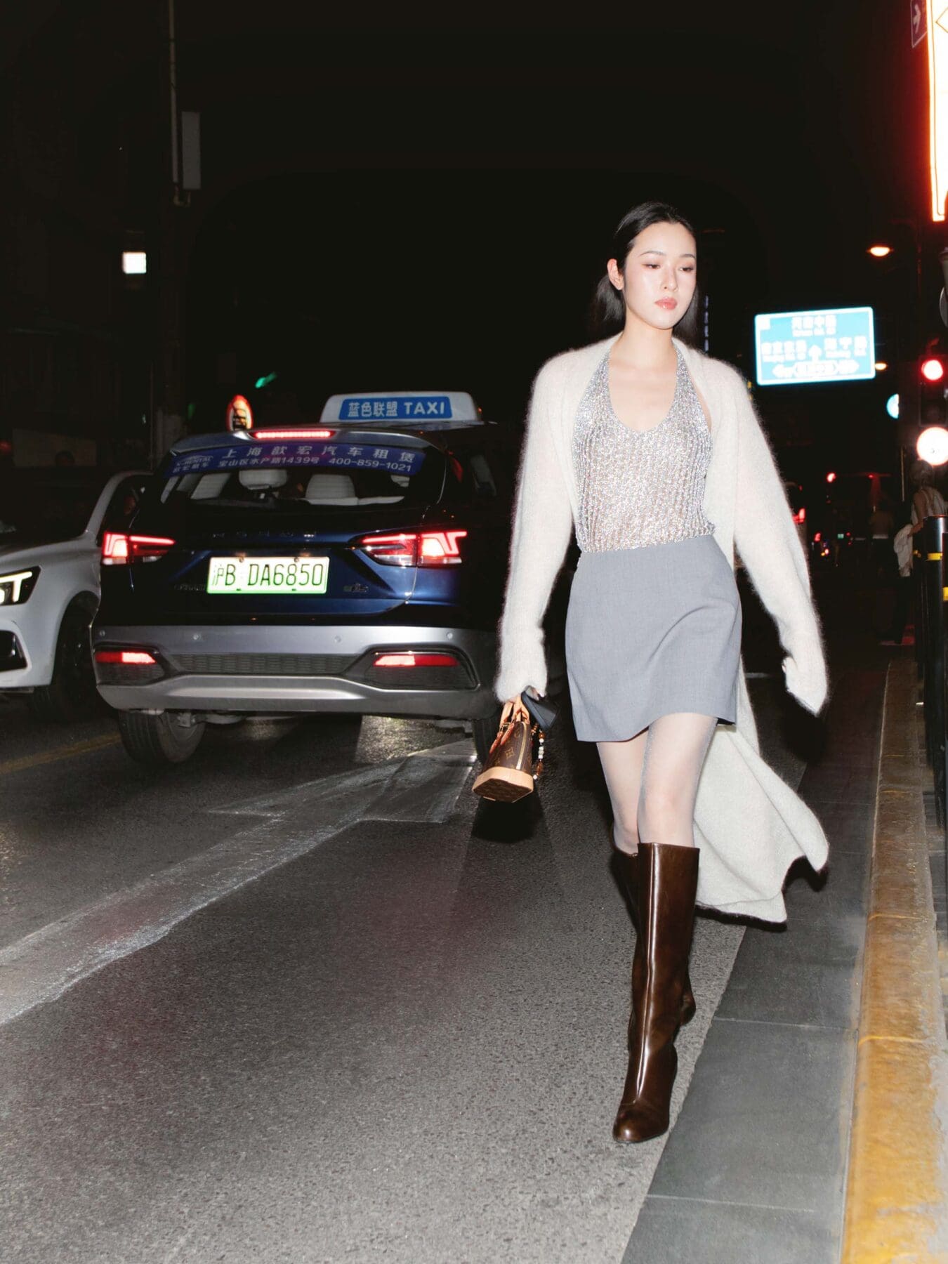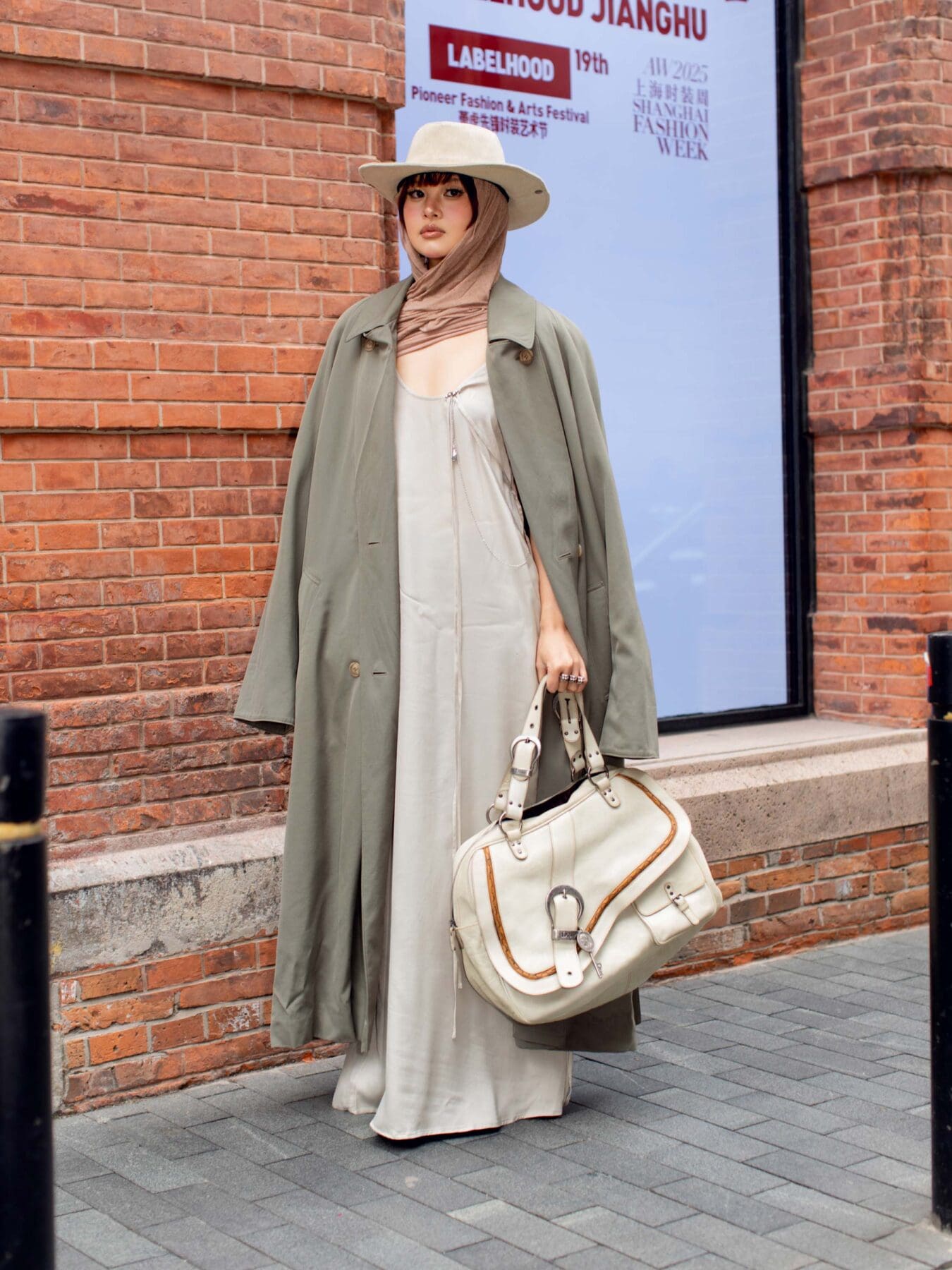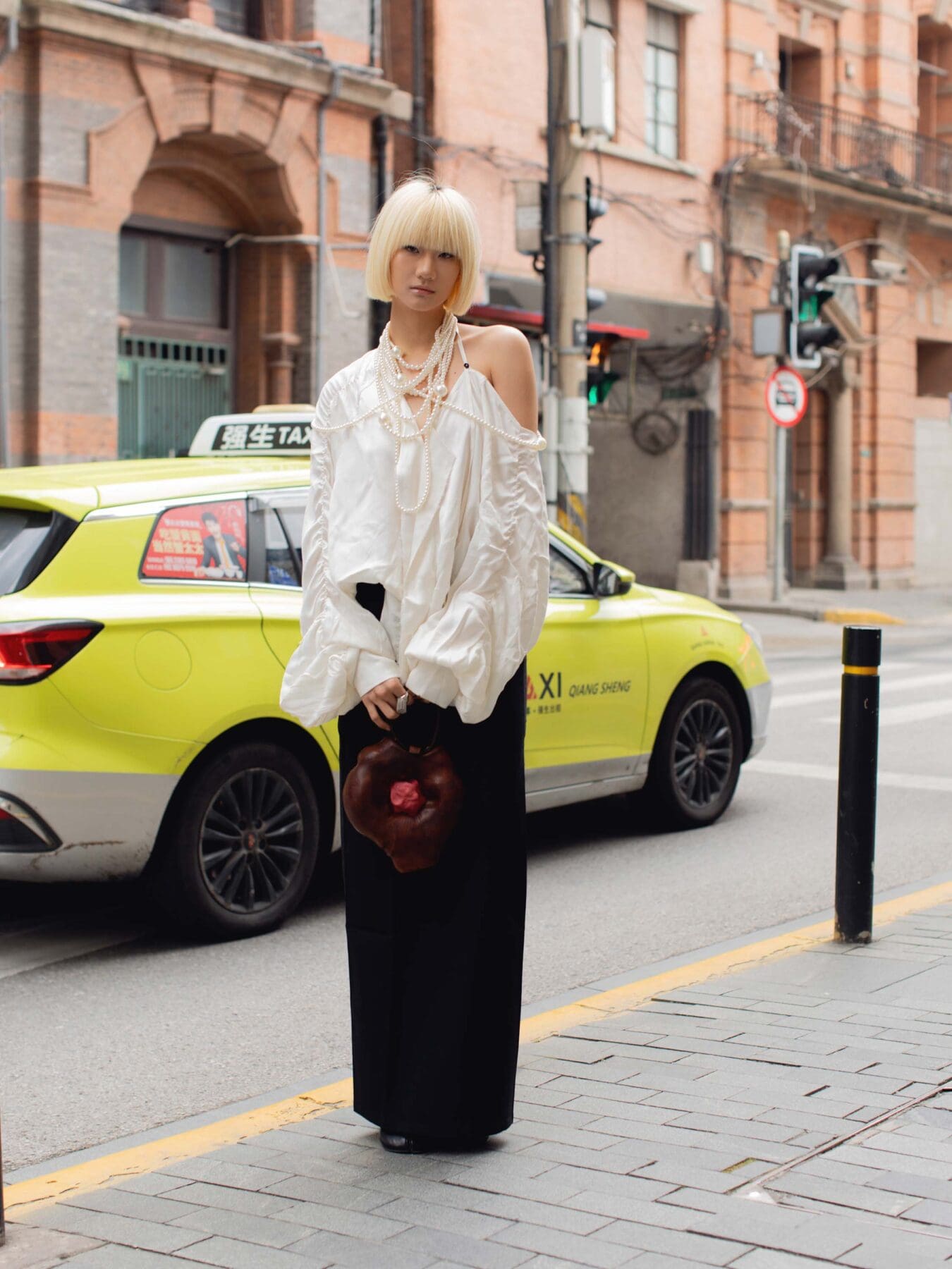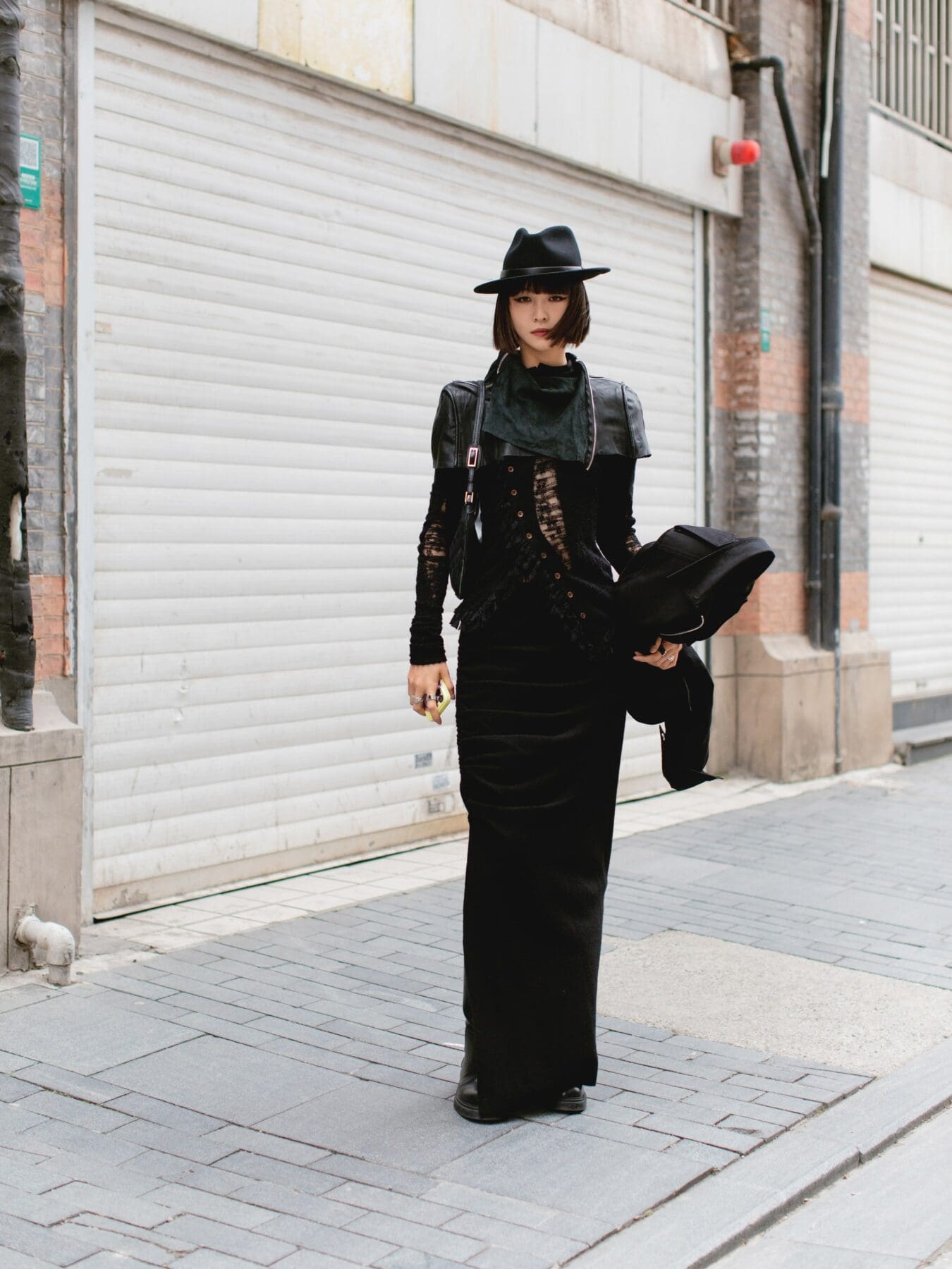 然而,真正體現風格變革的,往往不僅限於天橋,而是來自街頭的即興演繹。今季上海時裝週,隨着新中式風格的崛起,傳統設計語彙在現代剪裁中找到新的平衡點,而長襪、豹紋、皮革與毛毛元素的運用,則進一步豐富了造型的層次,構築出屬於上海的時尚敘事。