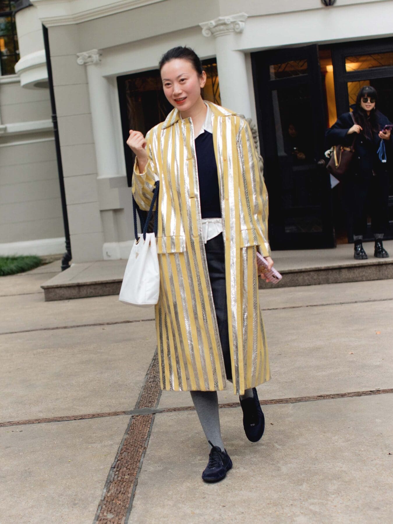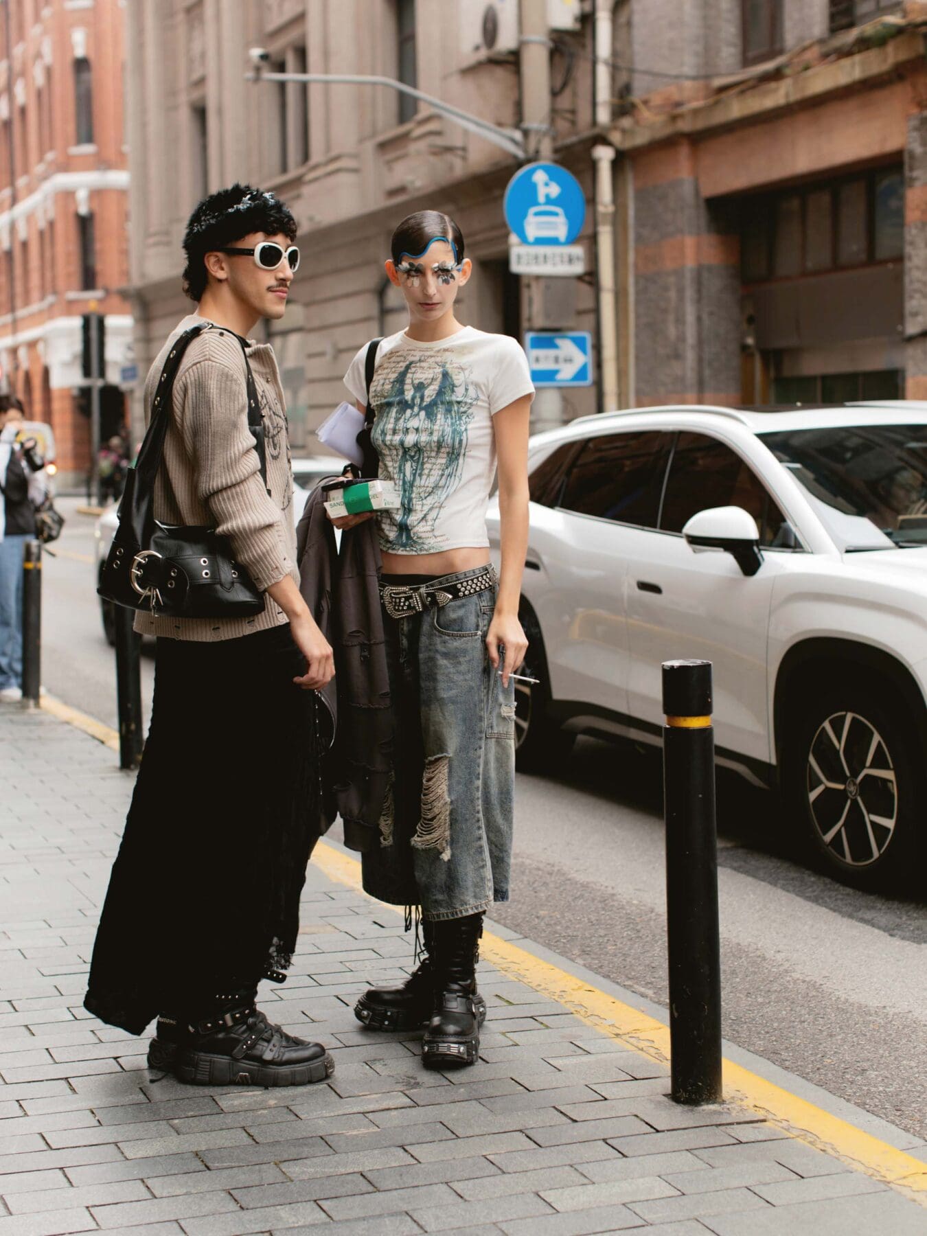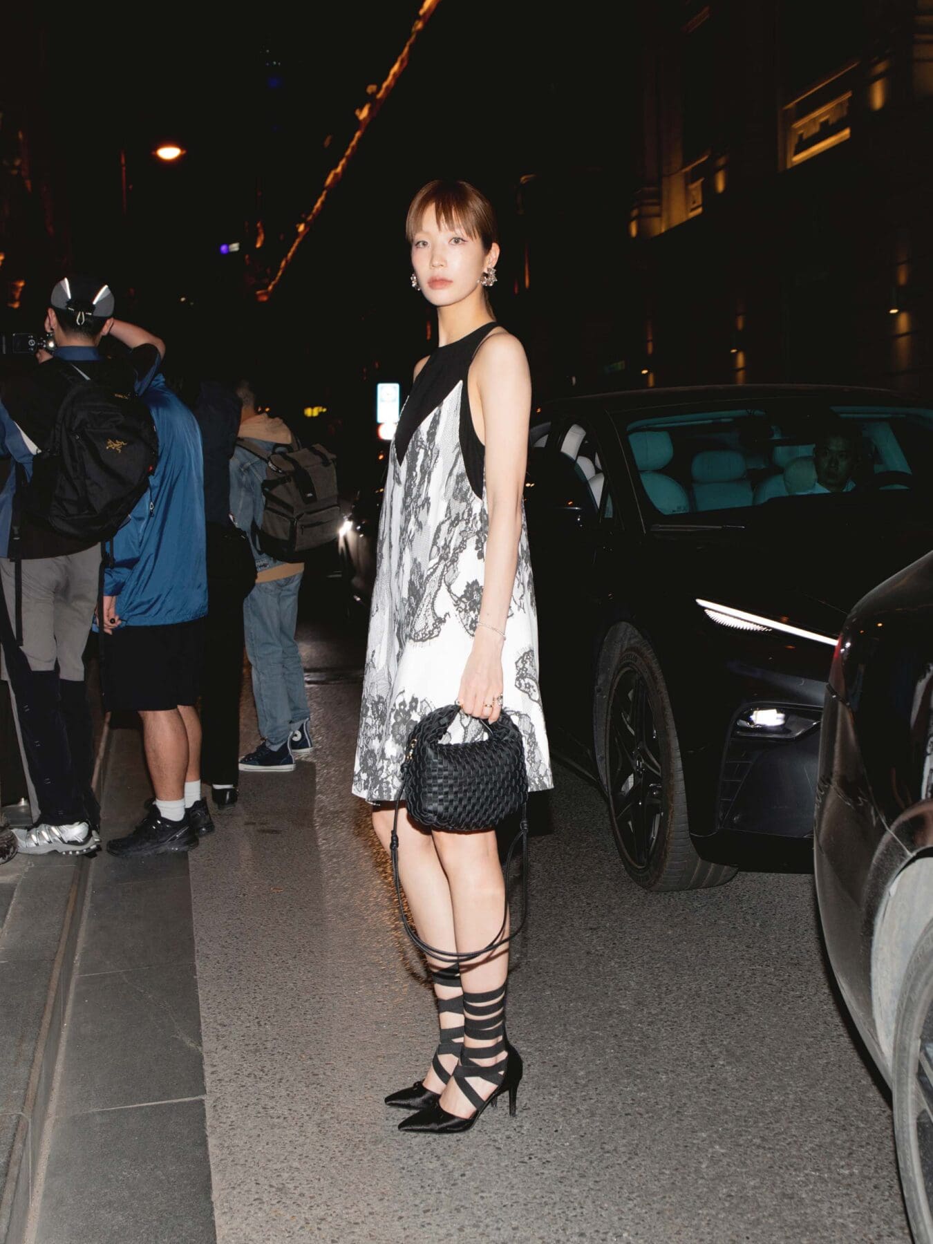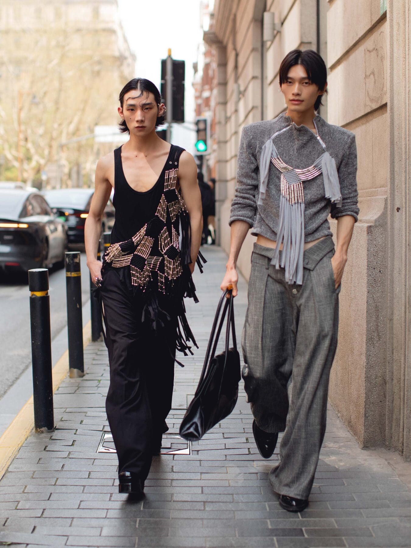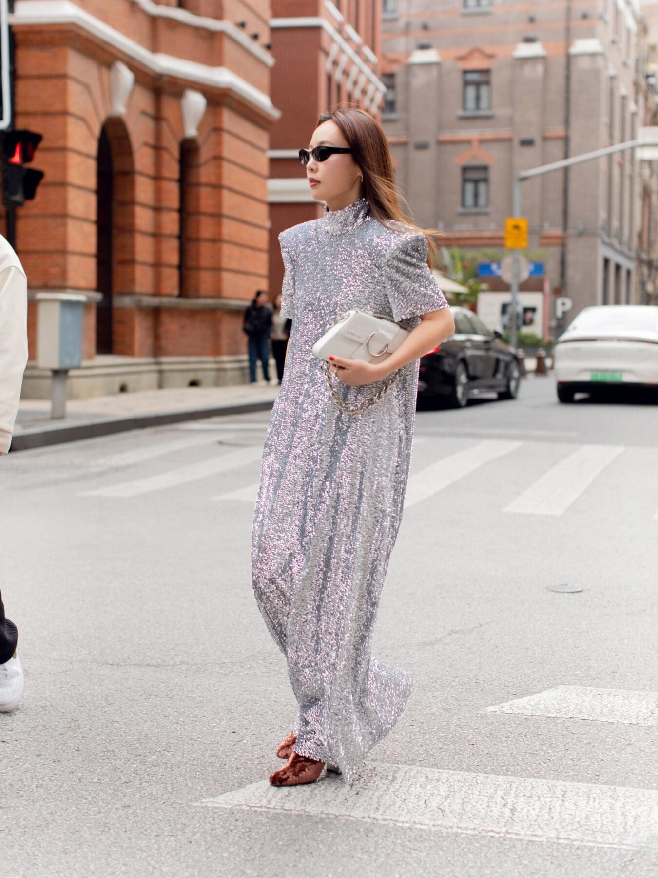 然而,真正體現風格變革的,往往不僅限於天橋,而是來自街頭的即興演繹。今季上海時裝週,隨着新中式風格的崛起,傳統設計語彙在現代剪裁中找到新的平衡點,而長襪、豹紋、皮革與毛毛元素的運用,則進一步豐富了造型的層次,構築出屬於上海的時尚敘事。