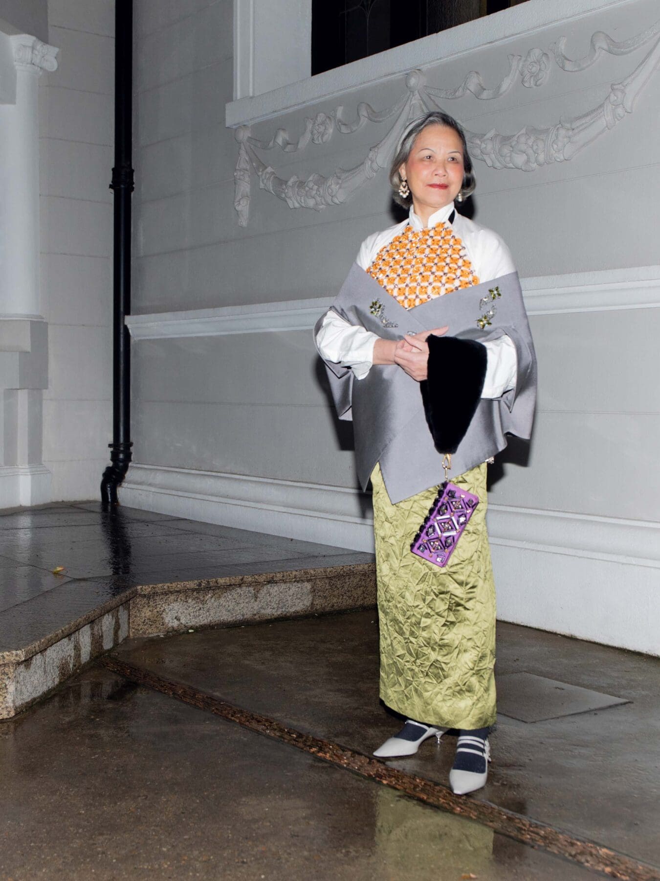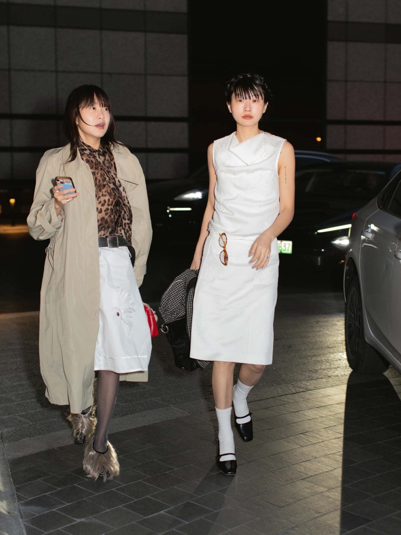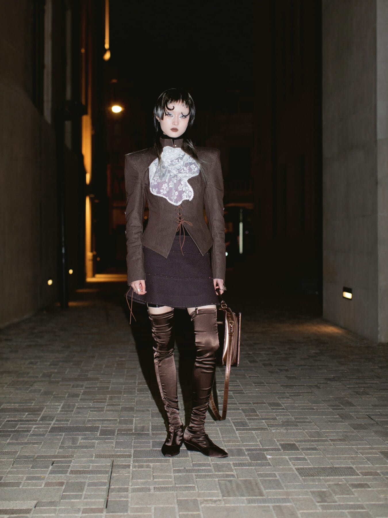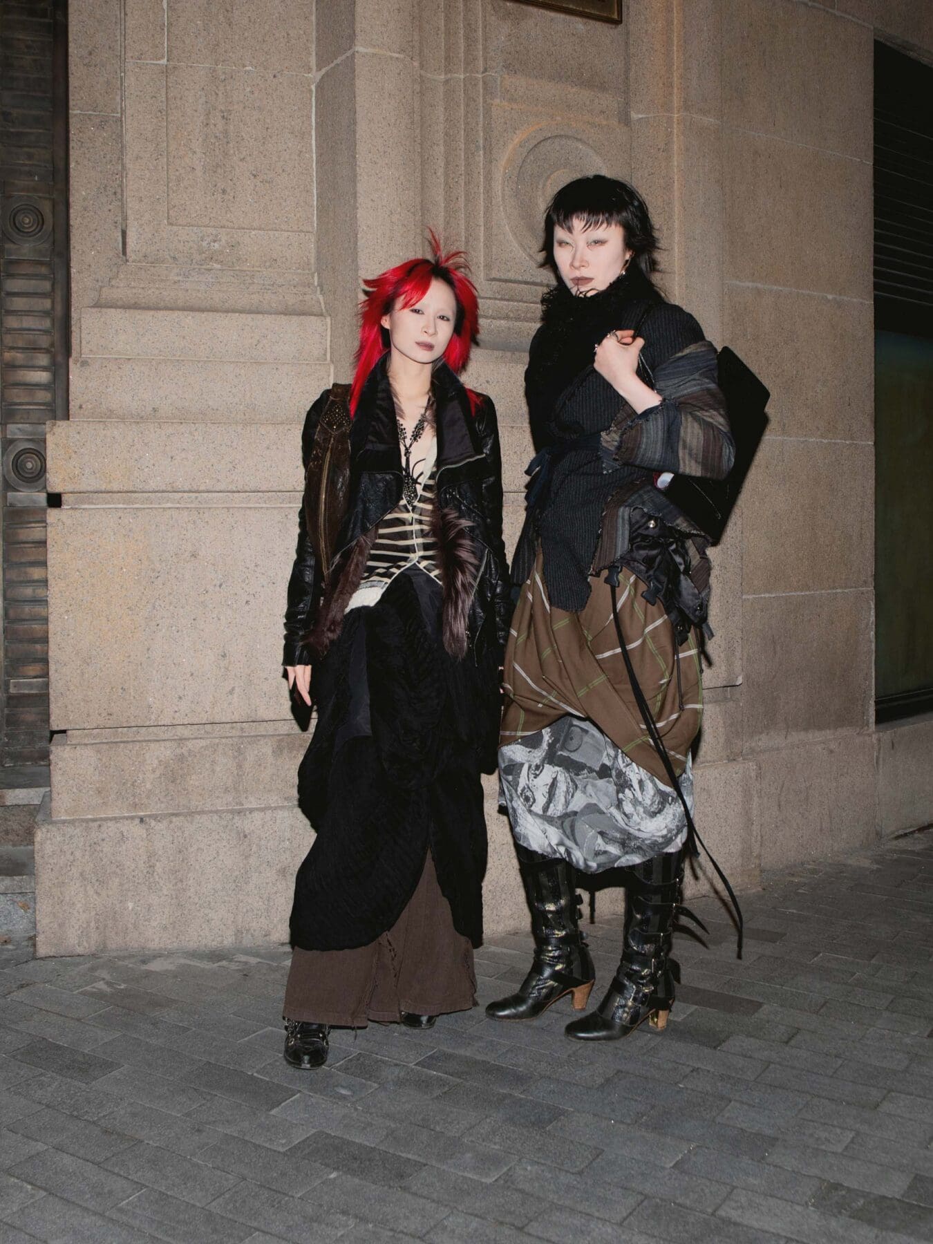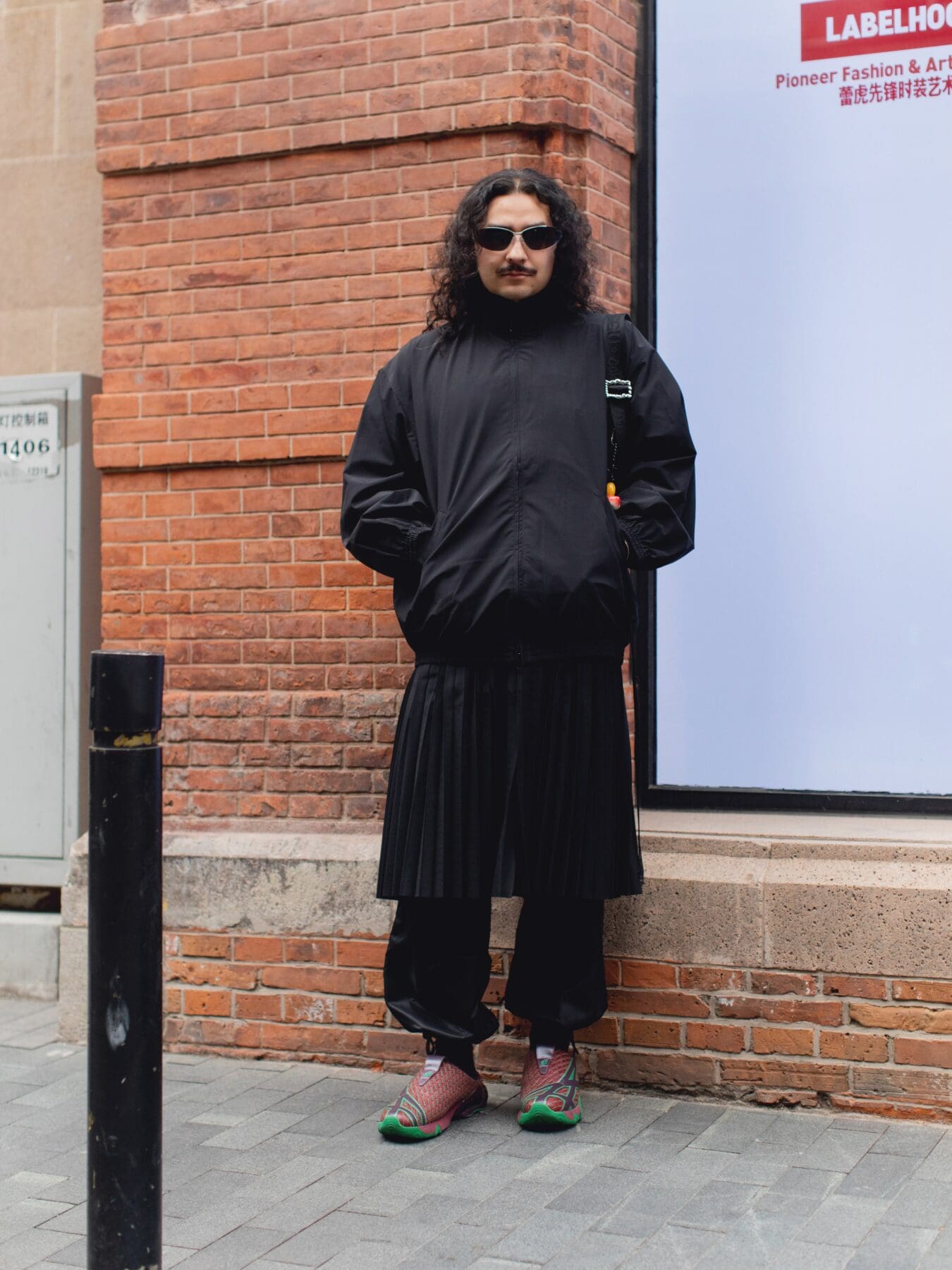 然而,真正體現風格變革的,往往不僅限於天橋,而是來自街頭的即興演繹。今季上海時裝週,隨着新中式風格的崛起,傳統設計語彙在現代剪裁中找到新的平衡點,而長襪、豹紋、皮革與毛毛元素的運用,則進一步豐富了造型的層次,構築出屬於上海的時尚敘事。