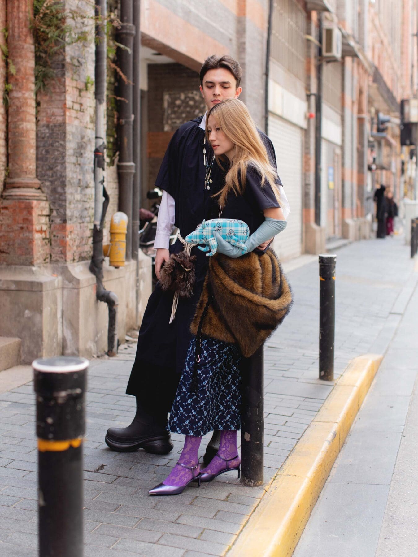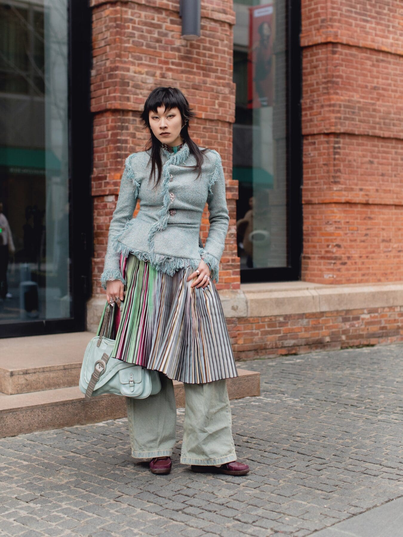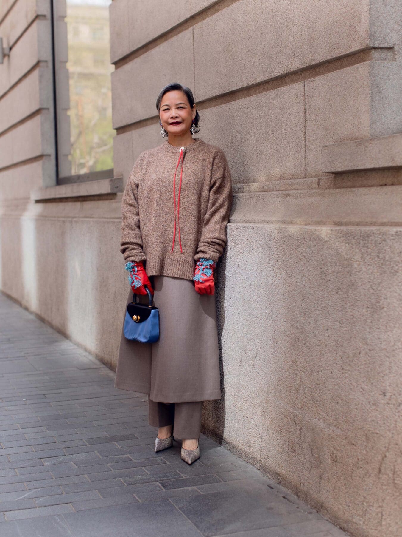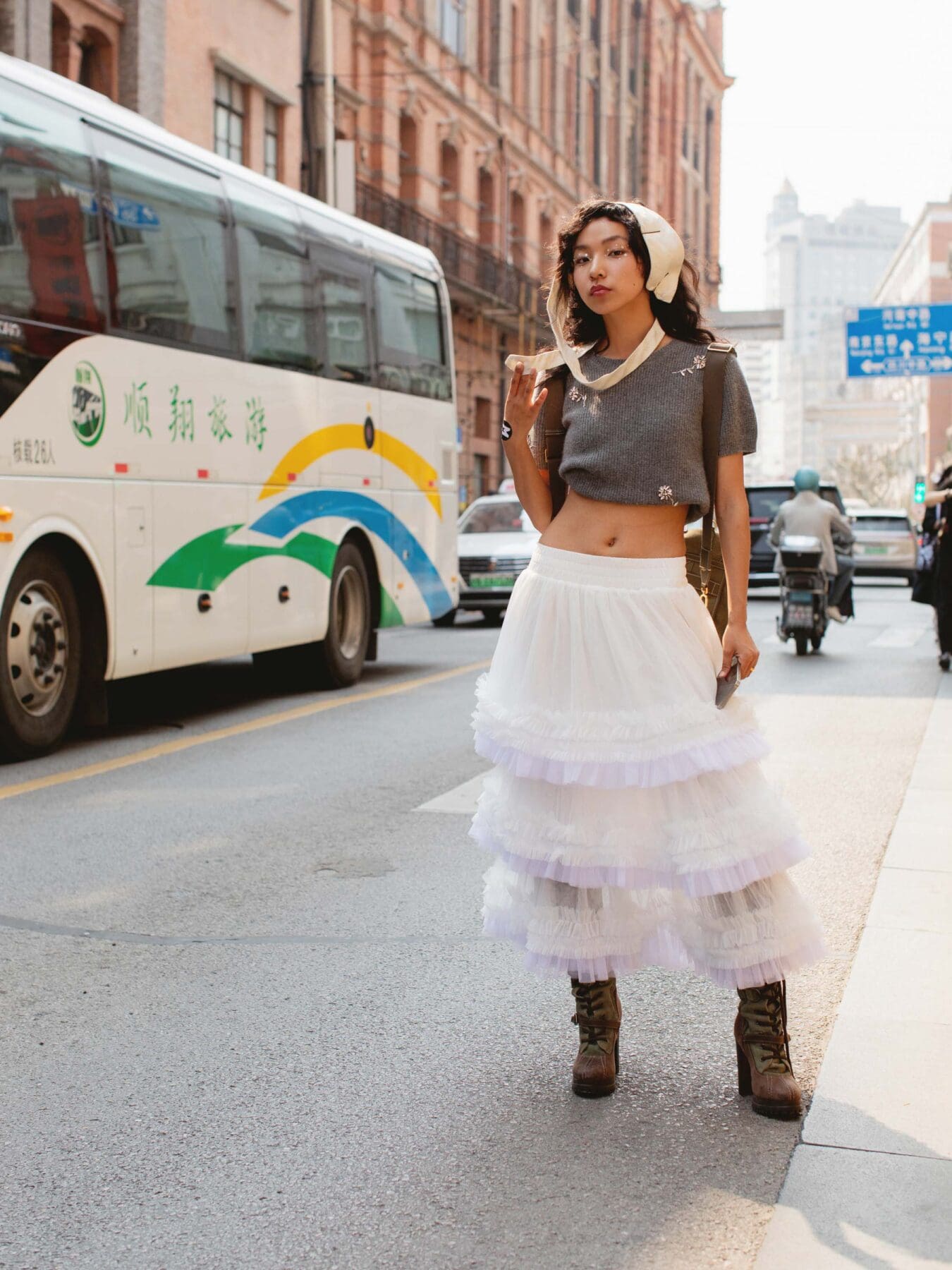 今季上海時裝週,毛毛元素不僅出現在經典的皮草大衣與披肩,亦成為配飾與細節設計的亮點。手袋、鞋履上的絨毛點綴,為極簡風格增添一絲柔和質感;而灰色套裝裙上覆蓋大面積紅色毛毛細節,則營造強烈的視覺對比。在上海時尚達人的演繹下,毛毛元素不再只是奢華的象徵,而是透過顏色與結構的巧妙運用,帶出Gen Z的時尚態度——既大膽,又不失玩味。