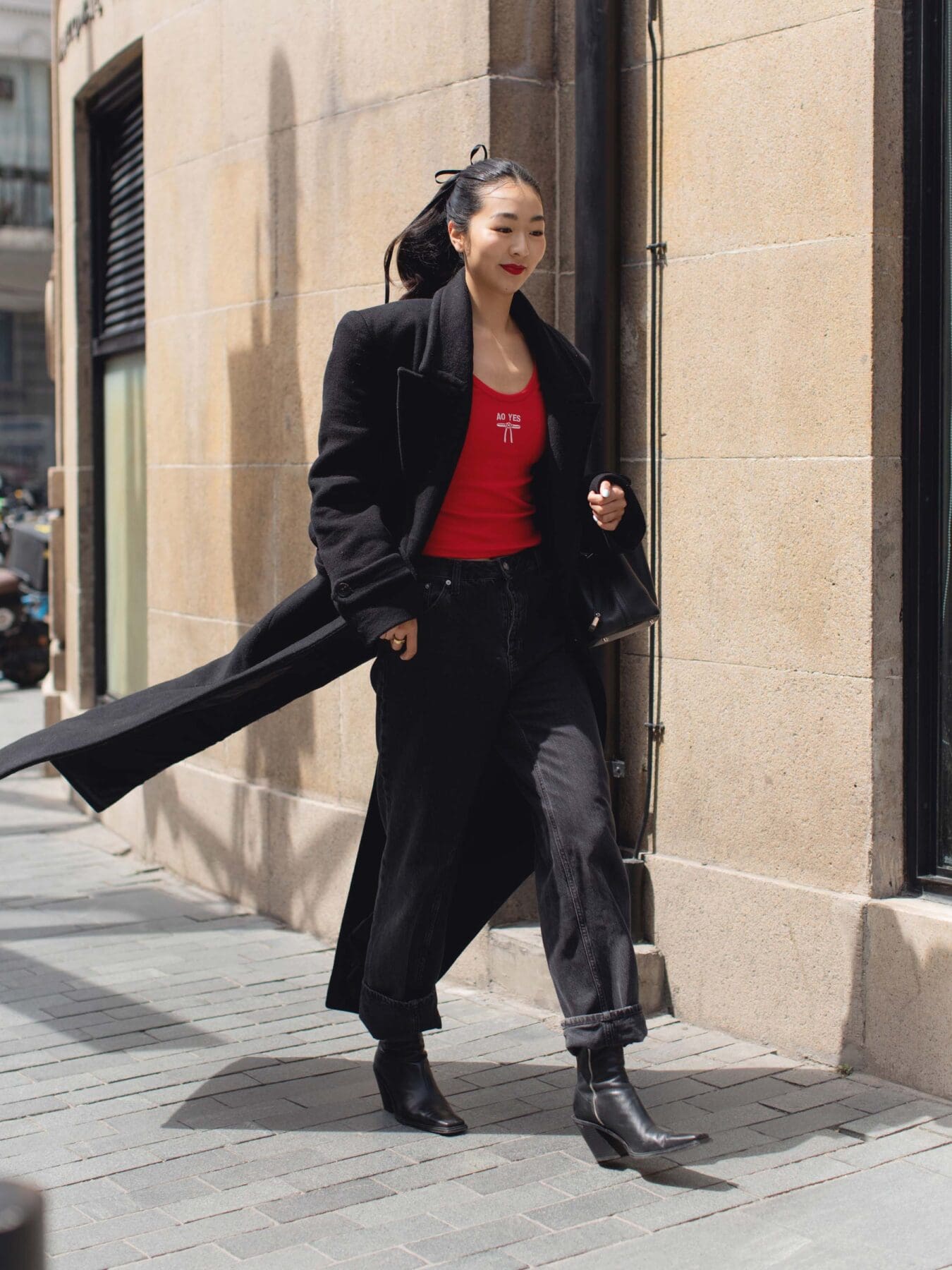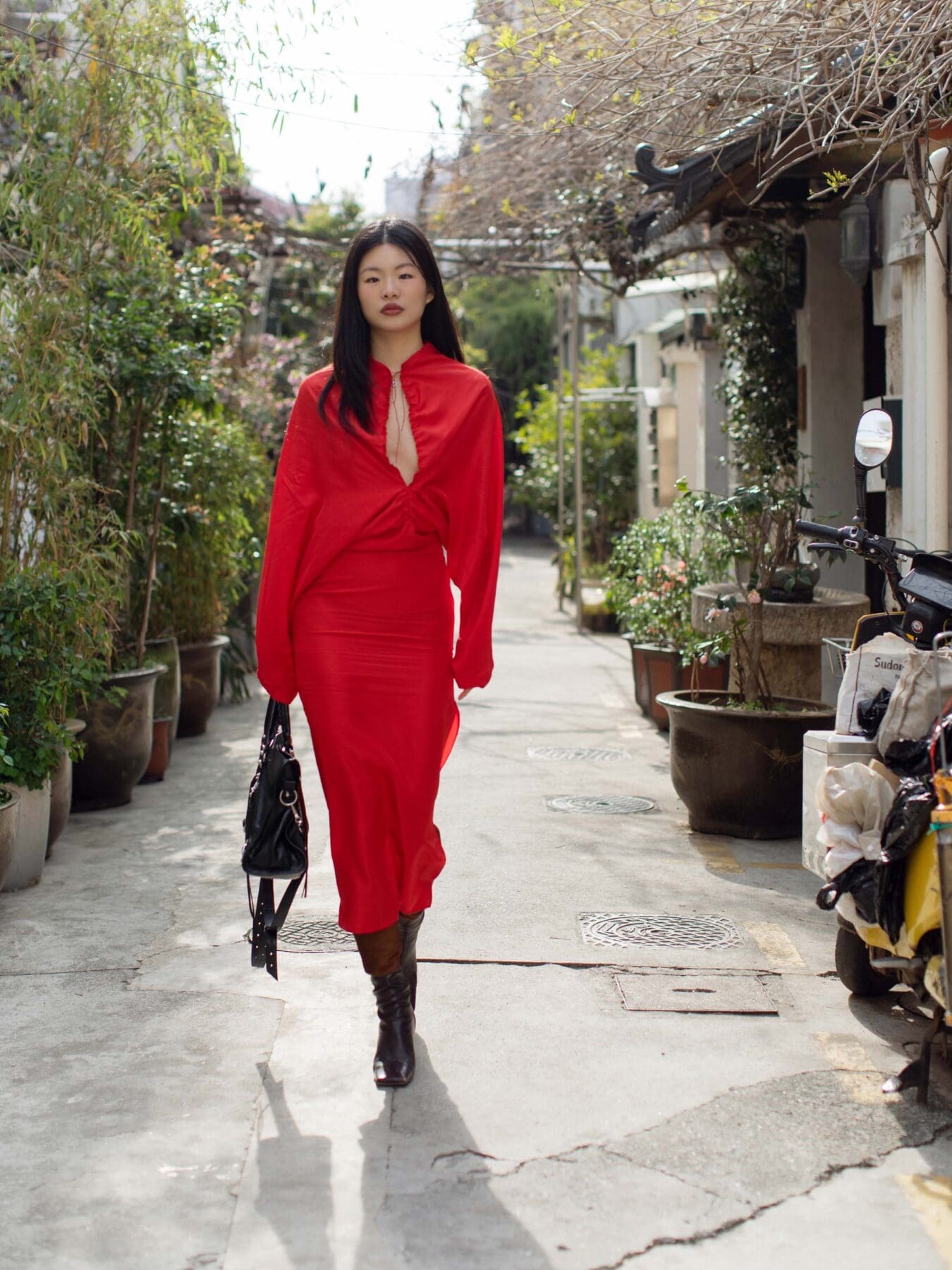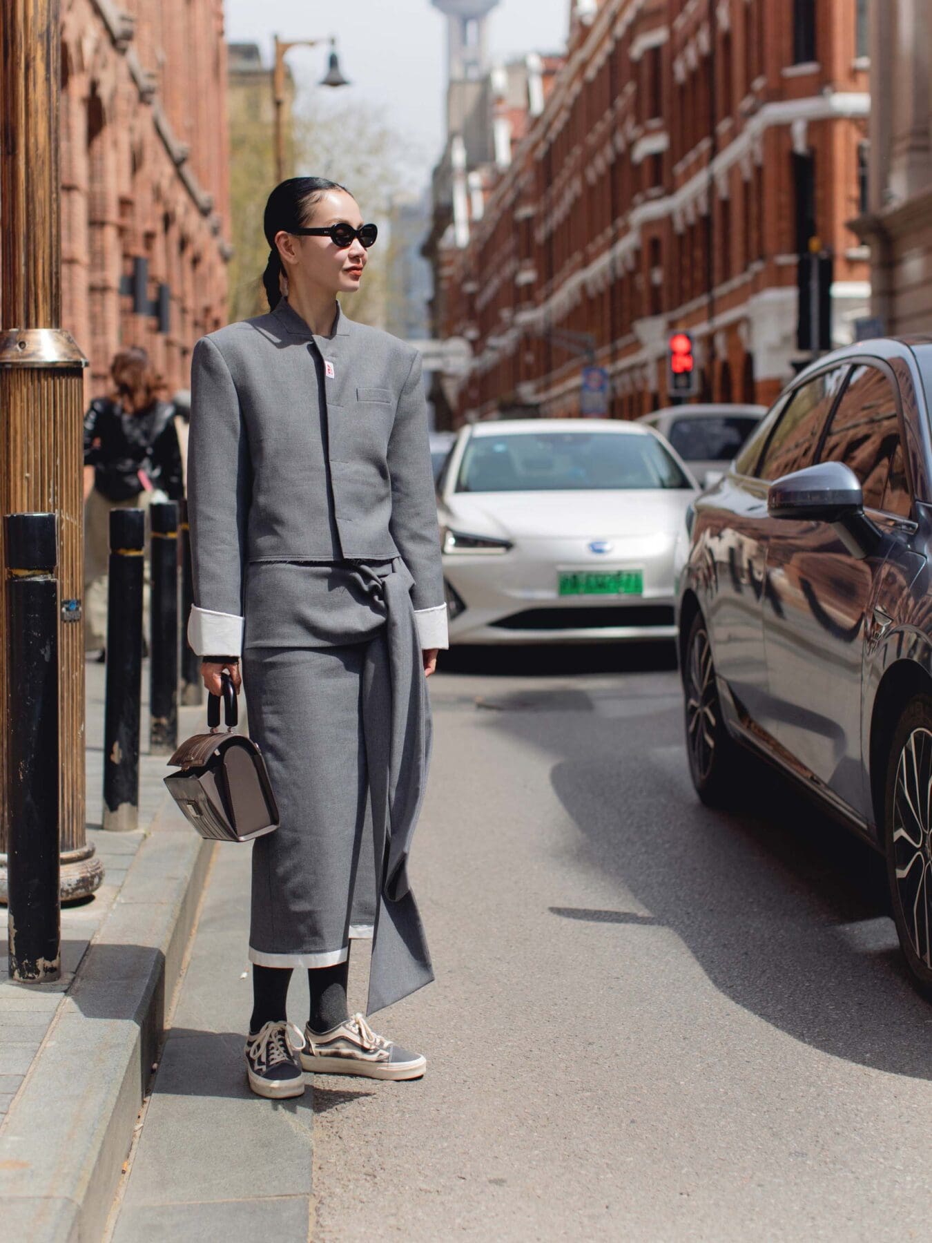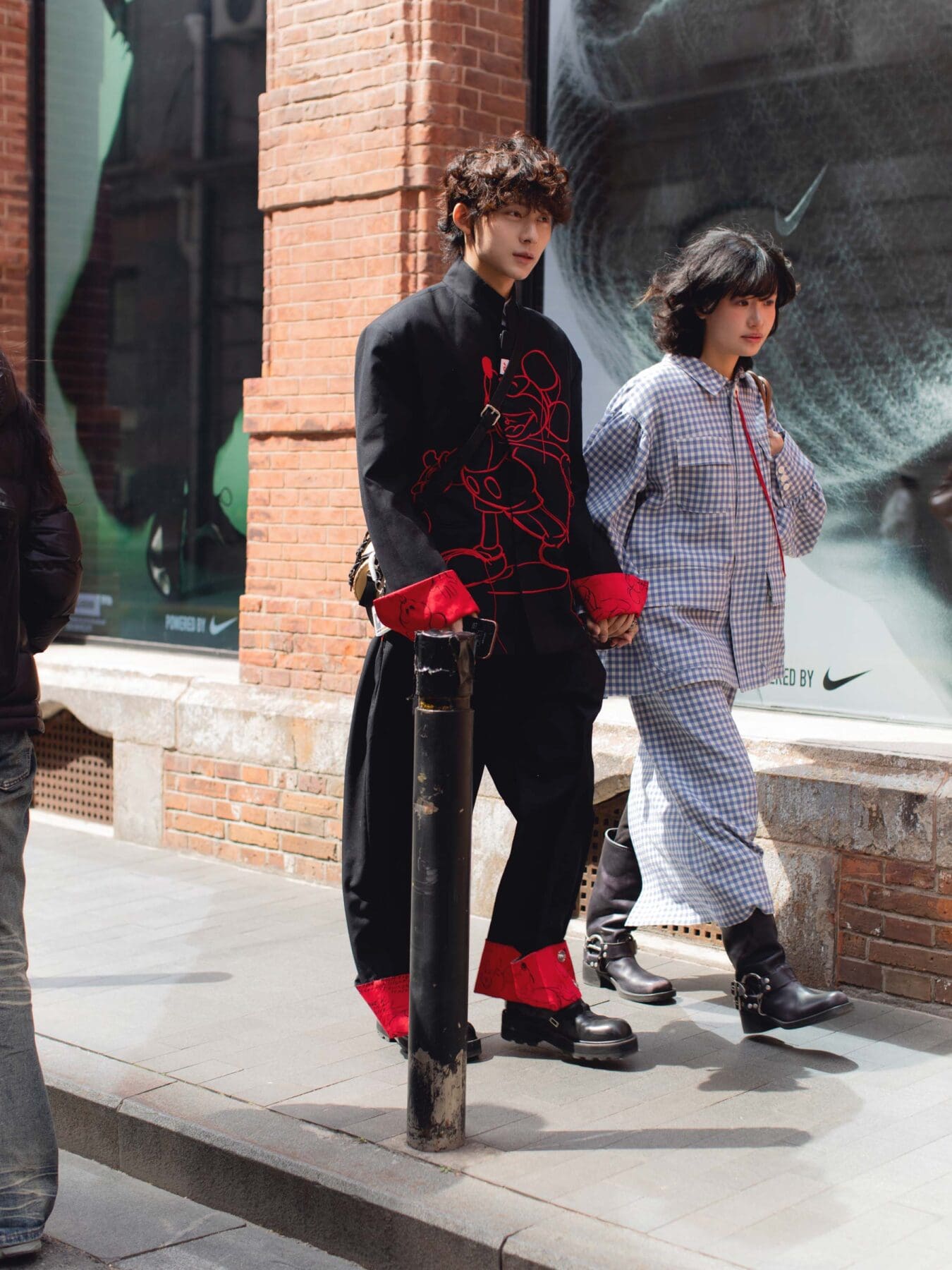 本季街頭造型中,新中式風格成為最受矚目的趨勢之一!傳統剪裁經過當代改良,以更為輕鬆的方式融入日常穿搭,例如盤扣外套搭配寬鬆西褲,旗袍式上衣與牛仔單品混搭,或以紅色點綴黑白基調,在細節中體現東方韻味。與過往略顯繁複的設計不同,今年的新中式趨勢更注重簡約與現代感,展現文化自信的同時,亦呼應當下時尚領域對實穿性的追求。