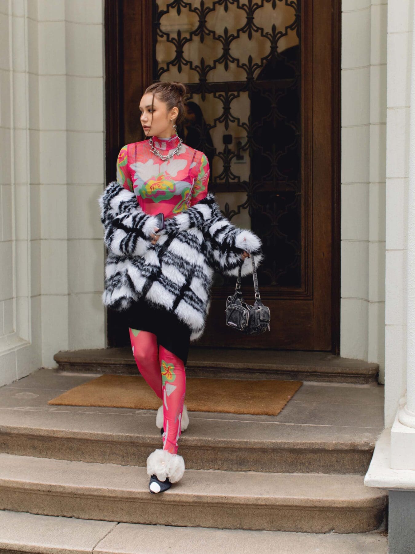 豹紋作為經典圖騰,今季在街頭造型中的運用更顯成熟與內斂;印花襯衫搭配素色風衣,減少視覺上的衝擊感;豹紋皮草外套則以黑色單品平衡,避免過度張揚;紅黑拼色豹紋外套與高跟靴的組合,亦成為值得關注的搭配方式。這股趨勢在上海潮人的精彩搭配下,不再只是關於「叛逆、性感」,而是一種對經典的新詮釋,呈現都市女性的多面特質。