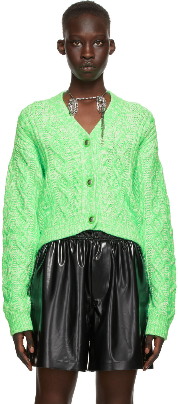 WE11DONE Green & White Cable Knit Cardigan available at ssense.com