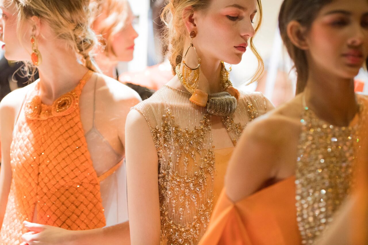 Backstage at the spring 2017 Armani Privé haute couture show.