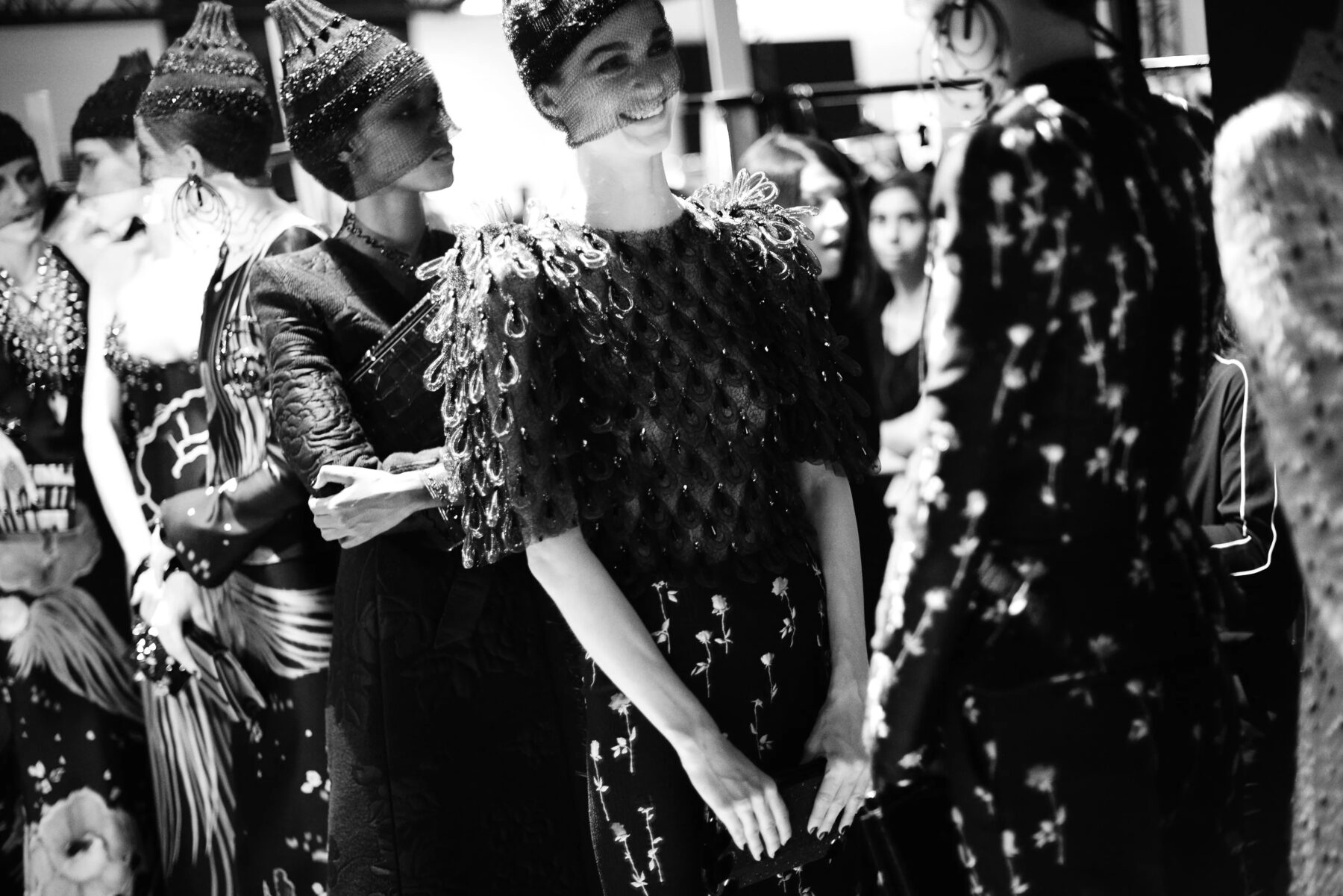 Backstage at the spring 2017 Armani Privé haute couture show.
