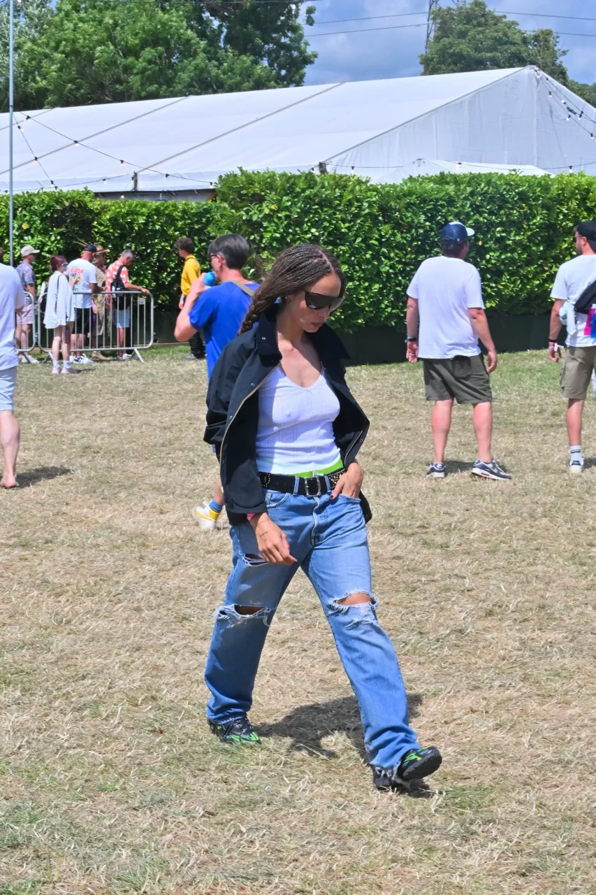 模特兒兼演員Adwoa Aboah近日成為Jo Malone品牌大使,在最新廣告中傳遞自愛的訊息。她也同時經營著Gurls Talk,一個為年輕女性打造的數碼平台。在音樂節上, 她以簡約的白T-Shirt配牛仔褲造型出現,並穿上有領飛行員外套與一雙舒適的運動鞋,散發率性氣息。