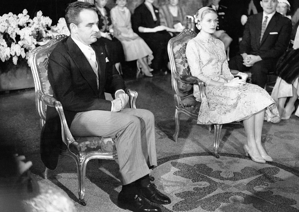 Le Prince Rainier et Grace Kelly avant la signature du contrat de mariage lors de la cérémonie civile qui se tient au Palais Royal le 18 avril 1956 à Monaco. (Photo by Keystone-FranceGamma-Rapho via Getty Images)