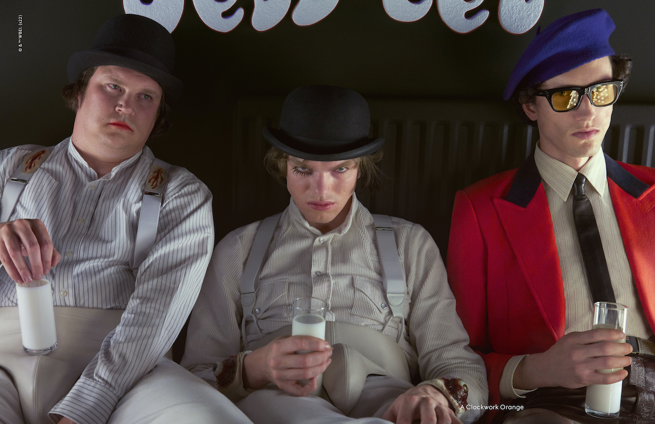 Alessandro Michele 本身是一名電影迷,一直深受 Stanley Kubrick 作品的影響。出於對這位大師的敬愛,他這次選擇了走進 Kubrick 的電影世界,他告訴英國版《VOGUE》:「 (Exquistie 系列)將 adidas 和 Gucci 的代碼之間的奇怪結合是一種以最模糊的方式的化學實驗;因此,我也以類似的方式宣傳。我打算把這個系列放在 Kurbick 的標誌性場景中,讓我的衣服有機地存在於他的世界中,但同時又感覺很陌生——這是我對電影和其最聰明的大師之一的致敬。」,Alessandro Michele 嘗試攫取多部電影傑作並重新詮釋,以服裝為電影填補含義,讓人從此引發共鳴。