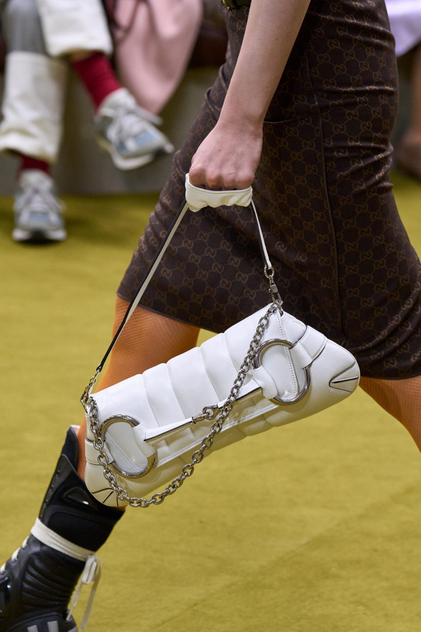 Gucci 2023 年秋冬系列有一款千禧年手袋重回人們的視線—— Horsebit 鏈條手袋,除了作為 Clutch 手拿還可以單肩揹,其實過去這款手袋在古著市場一直被大家忽略,直到現在它將再次攻佔大家的時尚衣櫥。