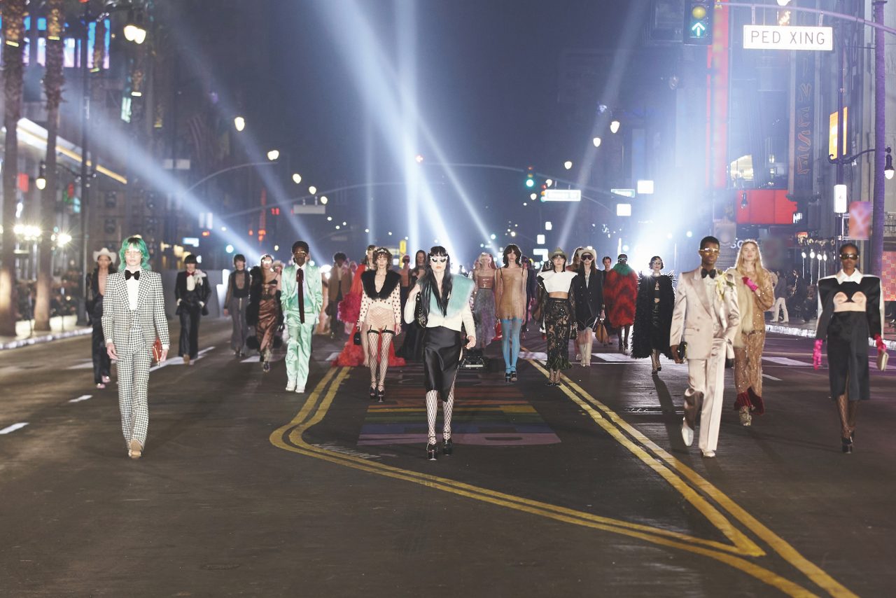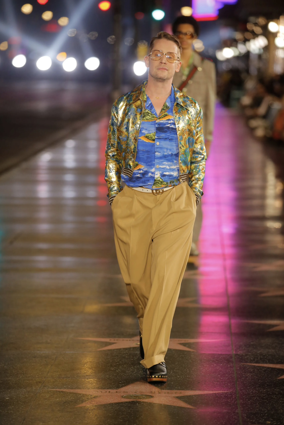 《VOGUE》 HK:電影訴說光影世界的夢,今次 Gucci Love Parade 時裝展就特別向夢工場致敬。服裝方面則是 Alessandro Michele 向來擅長的性感誘人風格,從喱士、閃片、荷葉邊設計、華麗閃耀的晚禮裙到復古圖案的西装,散發獨有的奢華氣息。哪件服装最吸引你?