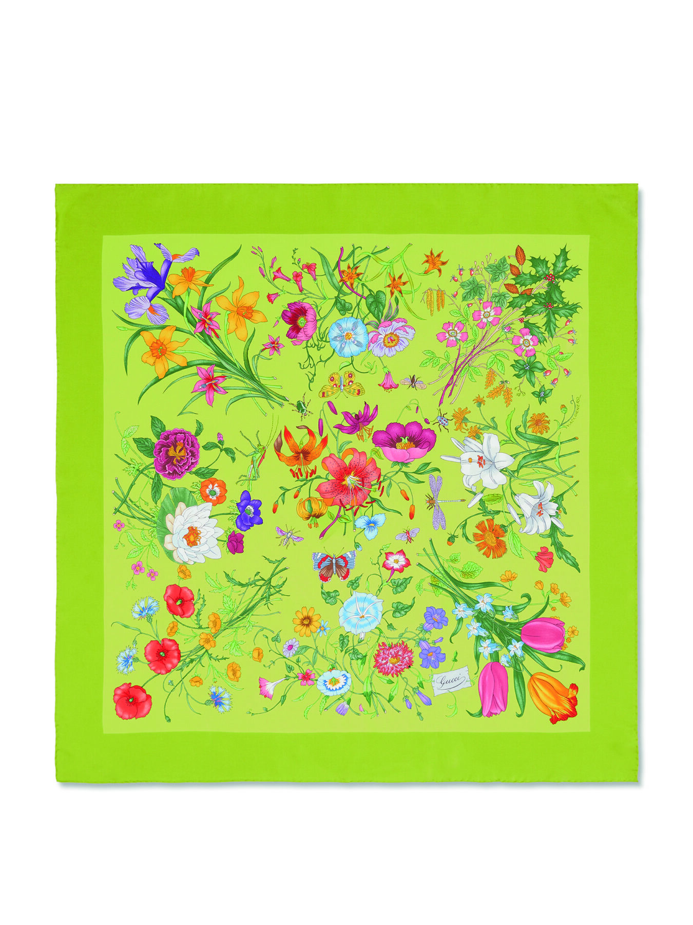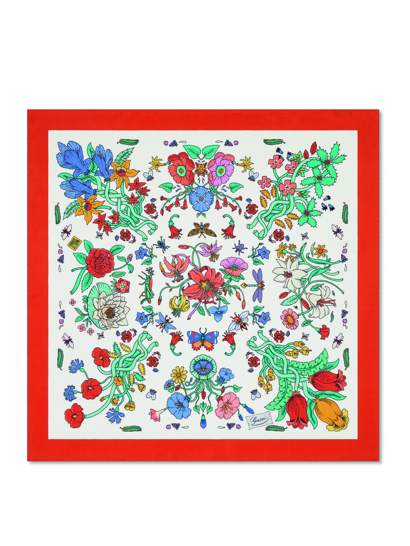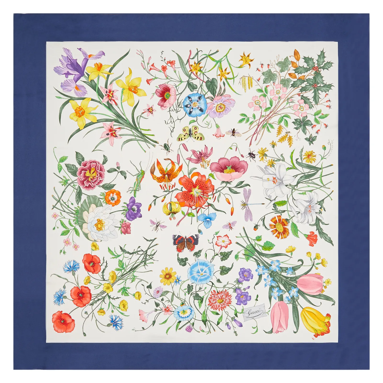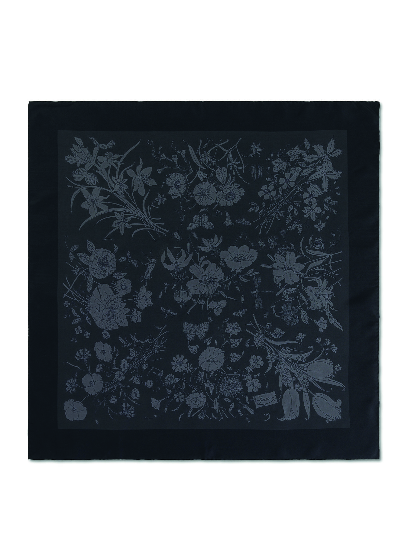 Gucci Flora絲巾在1966年面世,更被用作贈予摩納哥王妃Grace Kelly的禮物!當年Gucci家族成員Rodolfo Gucci希望以獨特的禮物向王妃致意,Accornero便以一週時間完成這個複雜精細的作品。圖案當中包含27朵花、漿果、蝴蝶及昆蟲,透過獨立的印刷步驟添上37種色彩,彰顯品牌的製絲工藝。