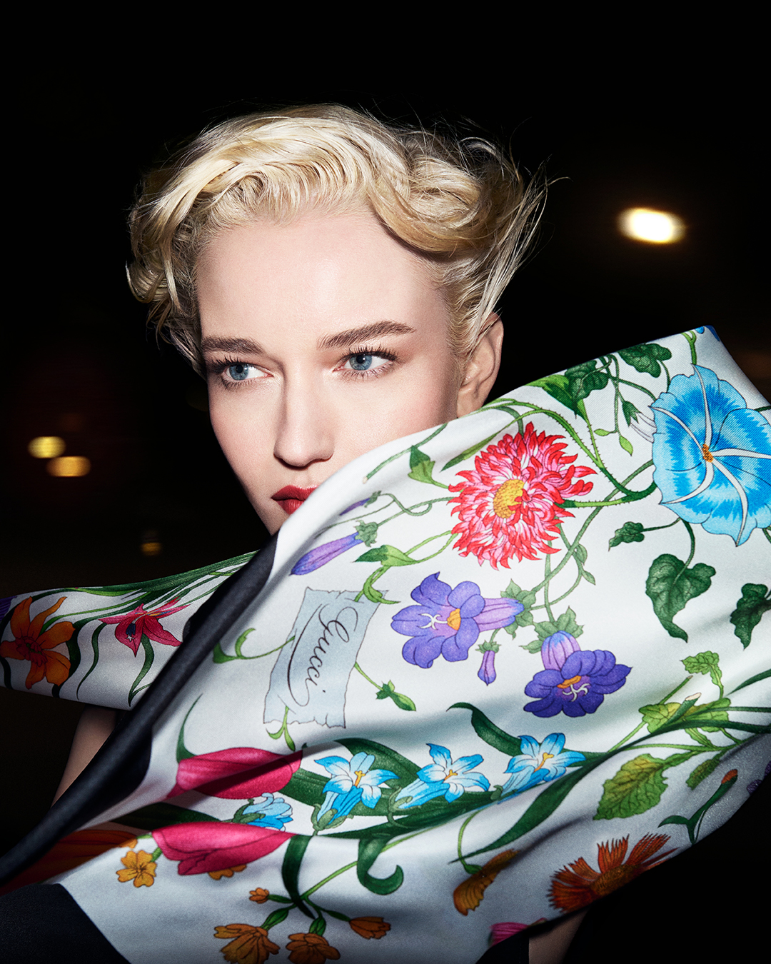 全新廣告企劃「Keep It Gucci: The Art of Silk」由知名攝影師Steven Meisel掌鏡,並邀請女演員Julia Garner演繹Gucci Flora絲巾的典雅魅力。這個經典花卉圖案由Vittorio Accornero de Testa在1966年設計,精巧細緻的花束至今仍是優雅的象徵。