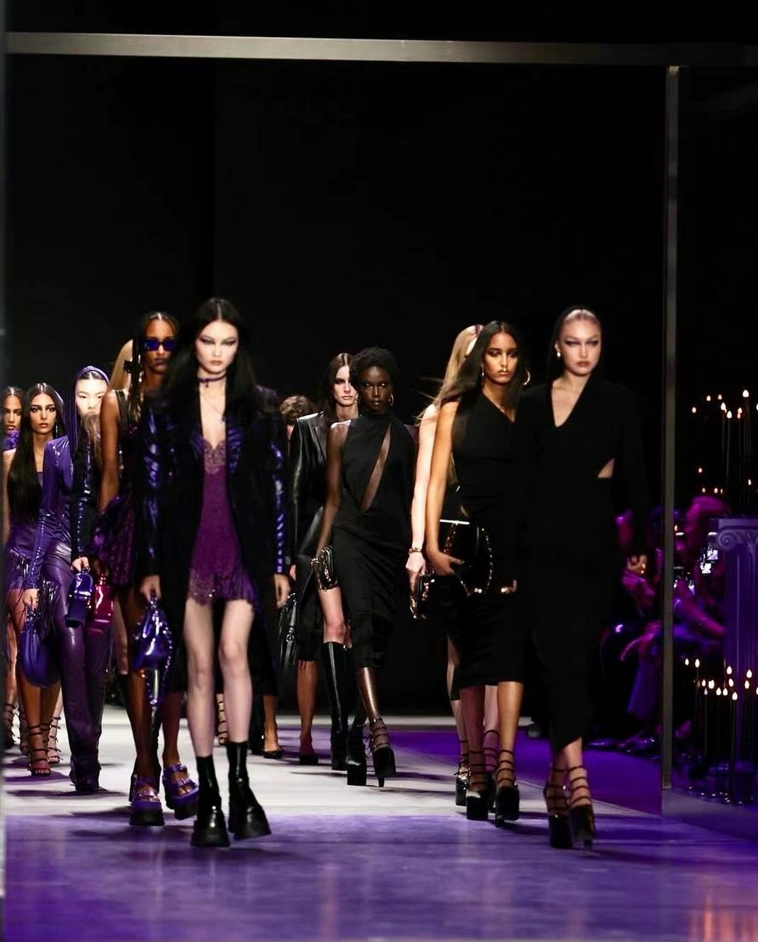 當賀聰踏上Versace的時裝展天橋,便能瞬間攫住所有人的目光。尤記得她在Versace 2023春夏系列時裝展上,以黑紫色造型化身暗黑哥德風女神,與Gigi Hadid共同擔任閉騷模特兒,她的動作流暢而自然,每一個轉身、每一個定格展現其出色的專業能力,讓人嘆為觀止。