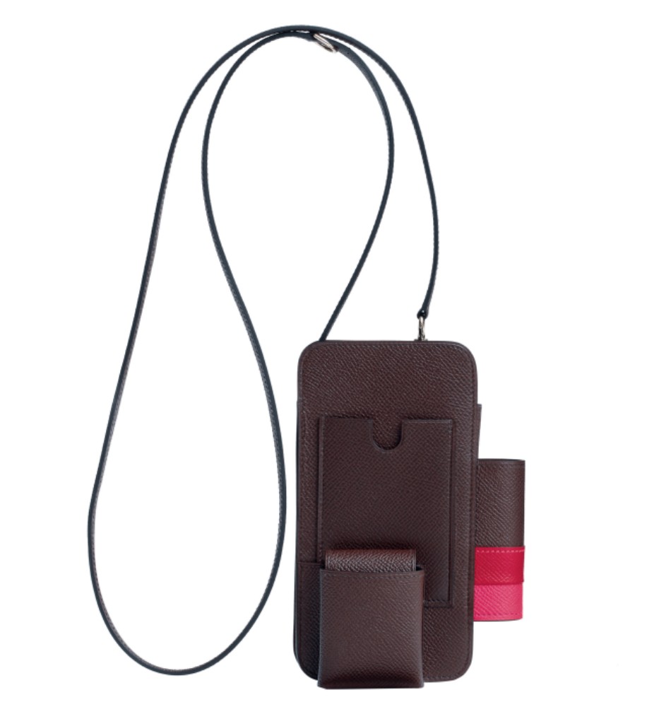 這款小牛皮手機套同樣具備 3 合 1 功能,可以放置手機、唇膏和 Air Pod,充滿實用主義的意味。
