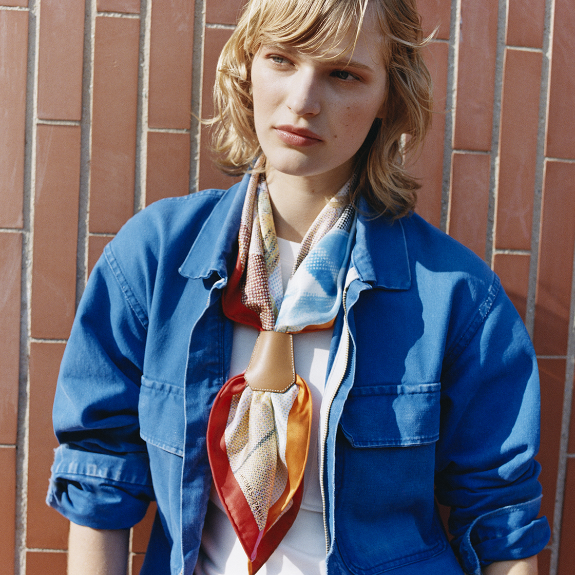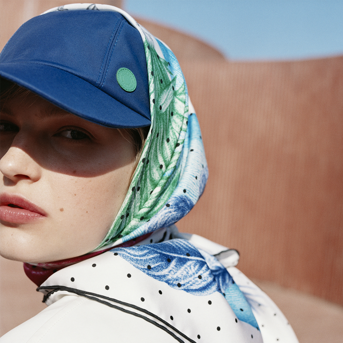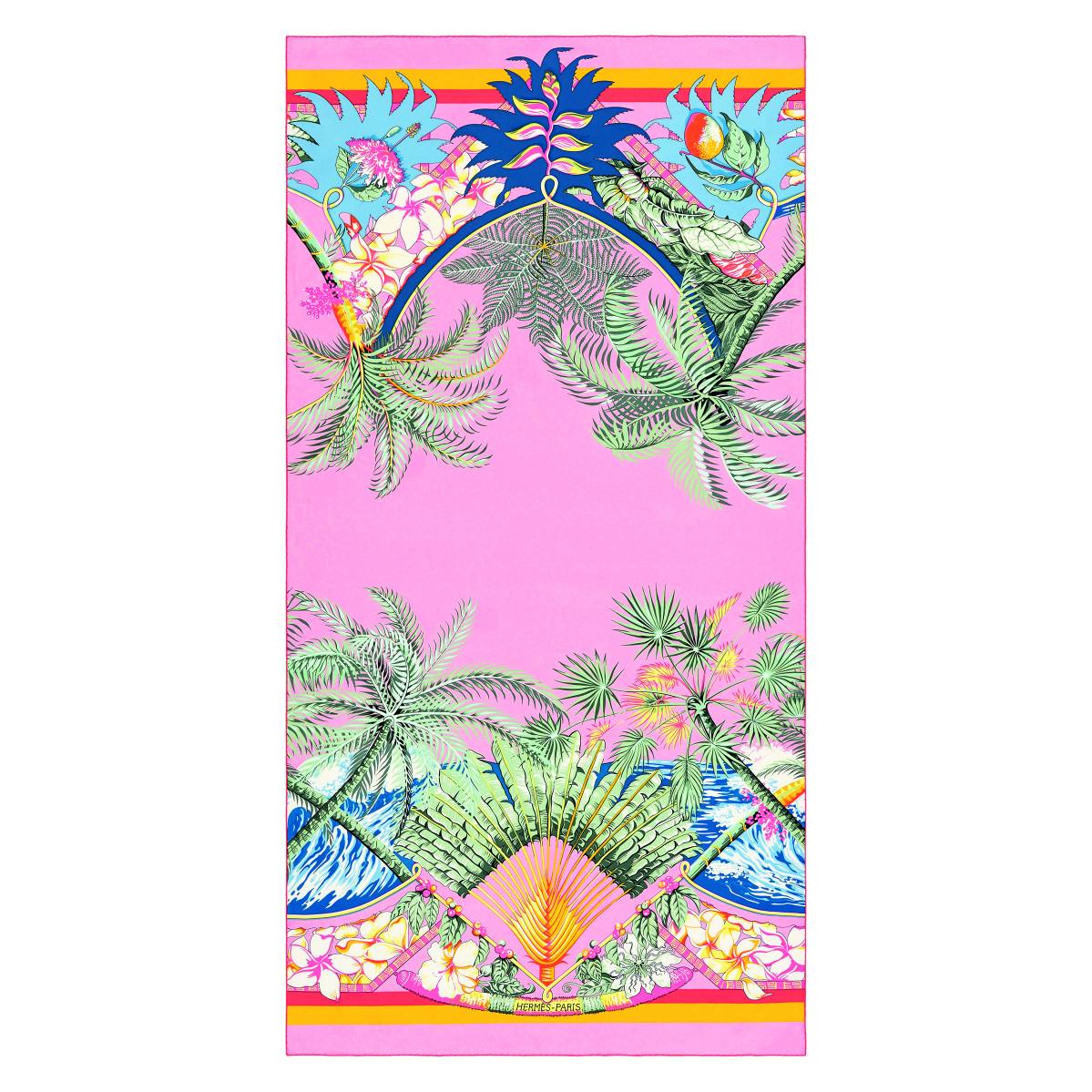 長方形絲巾是絲綢系列的新品,糅合印花絲巾和披肩的設計,以明信片的構圖形式再現分別由 Laurence Bourthoumieux 和 Loïc Dubigeon 設計的「Aloha」及「Charmes des plages normandes」印花,展現夏日的色彩。