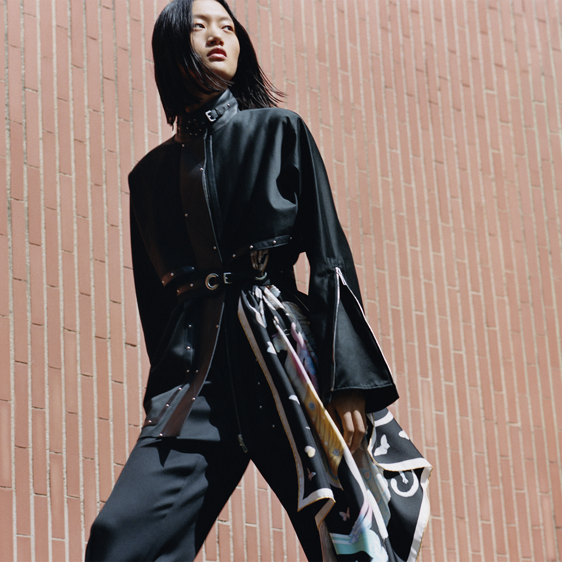 這種不經意的配搭方式,將絲巾放在 cap 帽之上又或是繫在腿間,漫步街上會更加顯得休閒而具有活力。更多女士絲巾造型不妨到官網欣賞。