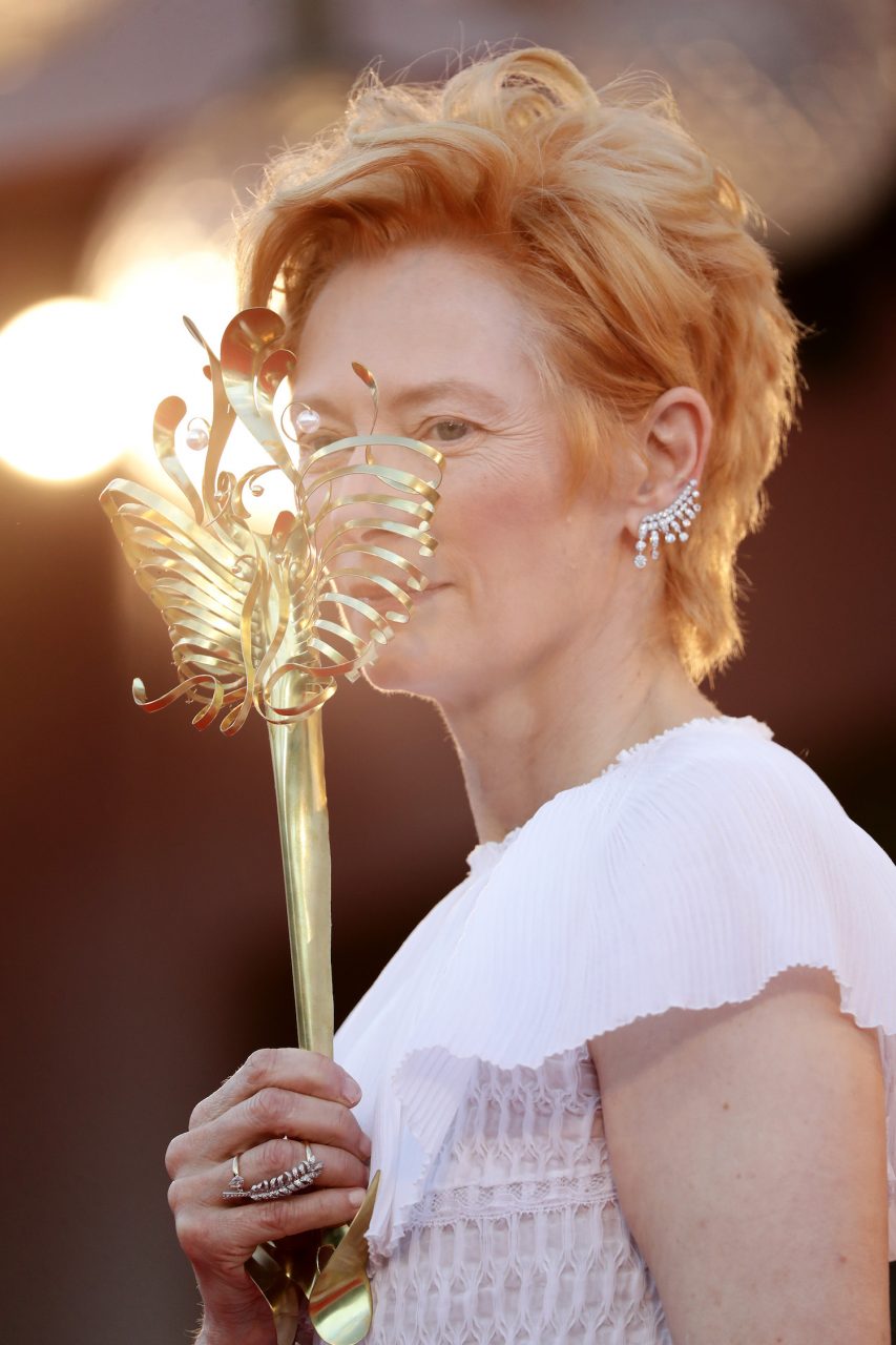 VENICE, ITALY - SEPTEMBER 02: Actress Tilda Swinton walks the red carpet ahead of the Opening Ceremony and the "Lacci" red carpet during the 77th Venice Film Festival at on September 02, 2020 in Venice, Italy. (Photo by Vittorio Zunino Celotto/Getty Images)