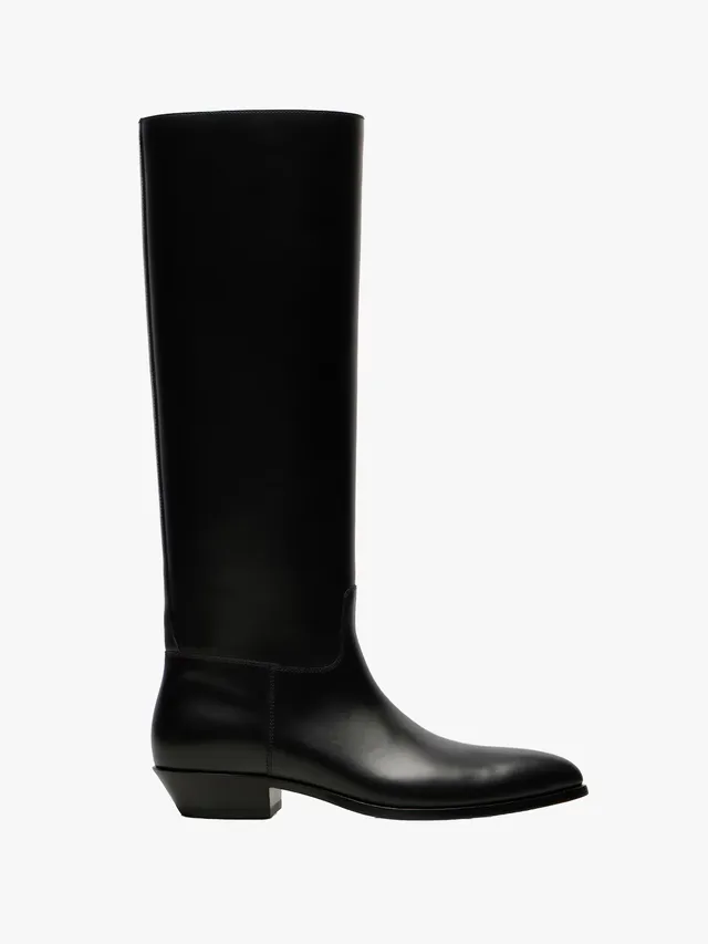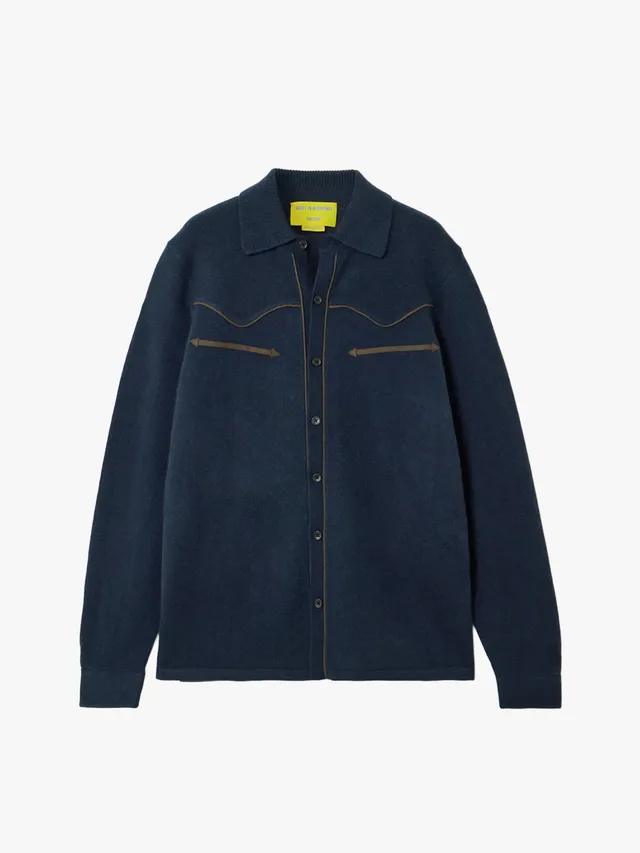 Guest in Residence 鈕扣針織衫與 COS 啡色高領毛衣的疊搭,為經典美式風格注入現代語彙。搭配修身長褲,再順勢塞進西部風格的高筒靴後,完美詮釋恰到好處的復古精神。