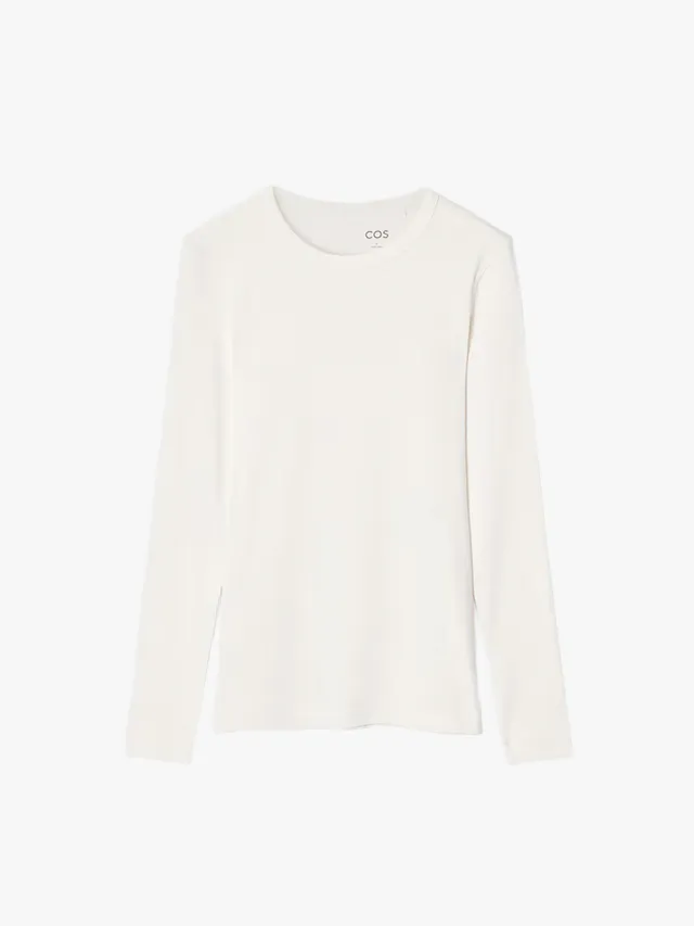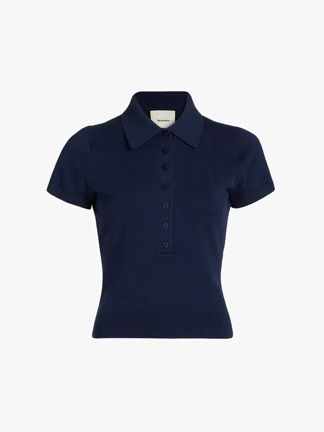 將 Reformation 針織 Polo 衫疊穿在 COS 白色羅紋長袖外,藍白對比鮮明利落,展現當代學院精神。搭配剪裁得宜的長褲與 Tory Burch 芭蕾平底鞋,輕鬆成就日常優雅。