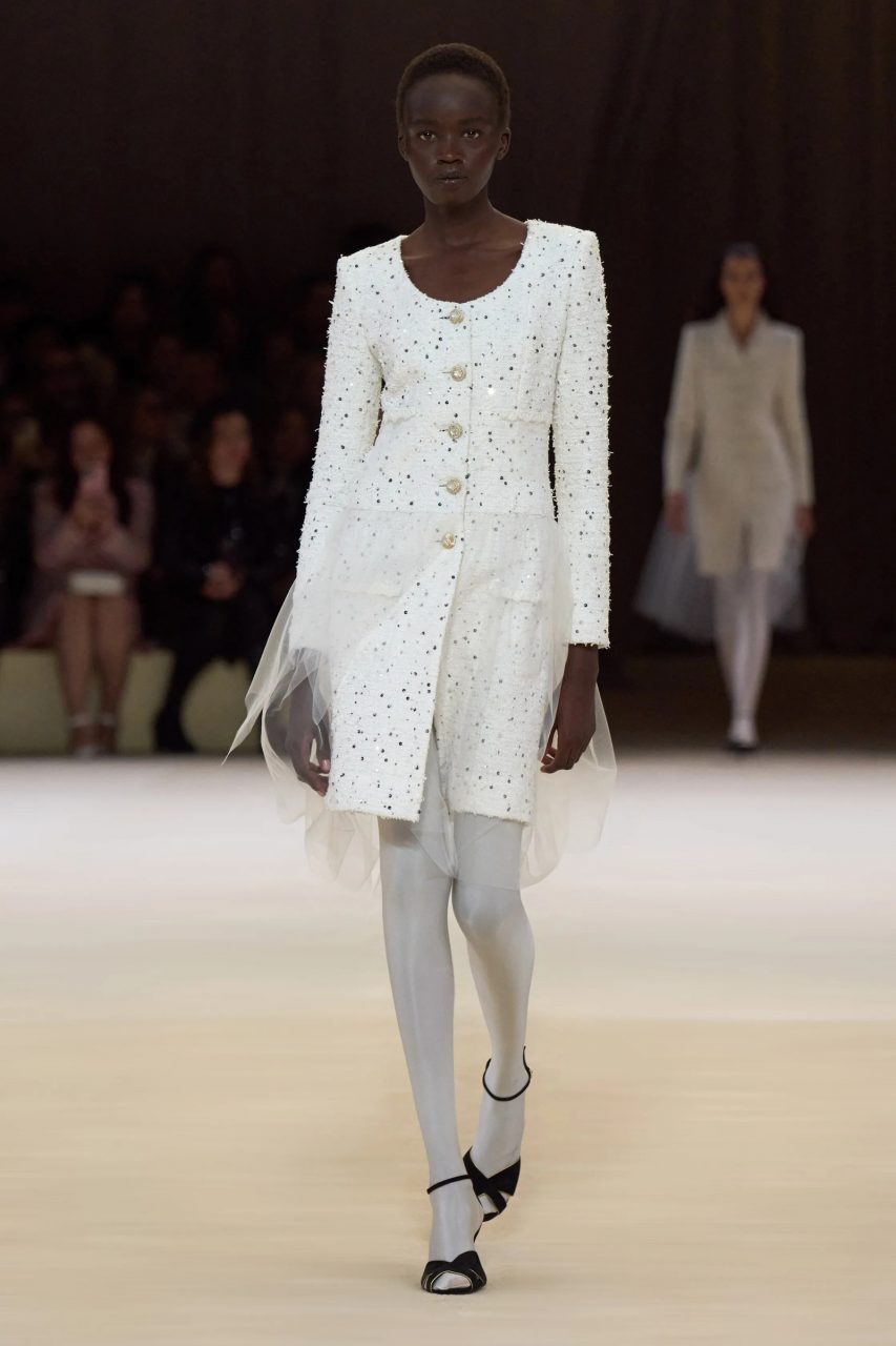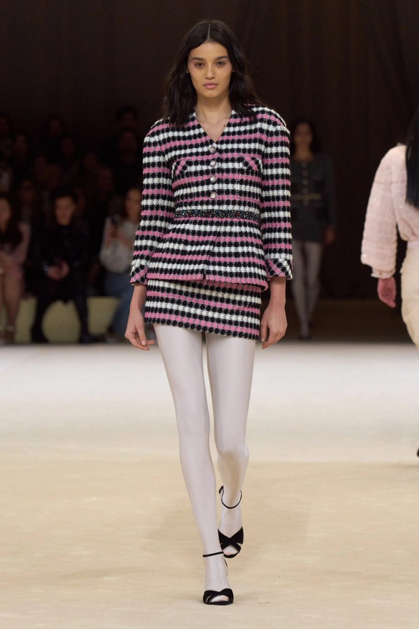 Chanel的時裝展是對可收藏時尚的讚歌。如果我們通過歷史來分析他們的系列,我們會注意到從Coco Chanel到Karl Lagerfeld再到Virginie Viard,他們保留著相同的風格線條、面料、色彩和細節,這是它的獨特之處。對於本季,現任創意總監Virginie Viard提出了一個引起了2024年春夏時尚界矚目的結合,那就是白色絲襪配高踭鞋。