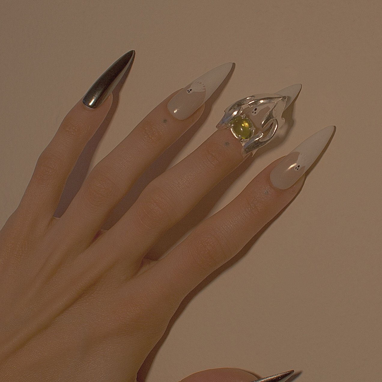 除了上述的重街頭感的首飾品牌,喜歡富有藝術感或浮誇的風格,那麼一定不可以錯過來自於莫斯科的小眾品牌 Baggira。設計師採用聚合物結合 3D 打印技術,將石膏雕像般的藝術品變成了耳掛。而代表作正是上圖的 Baggira 系列 ,設計靈感來源於希臘神話的生物,搭配流線型魚鰭皺摺纏繞著耳部,非常有氛圍感。