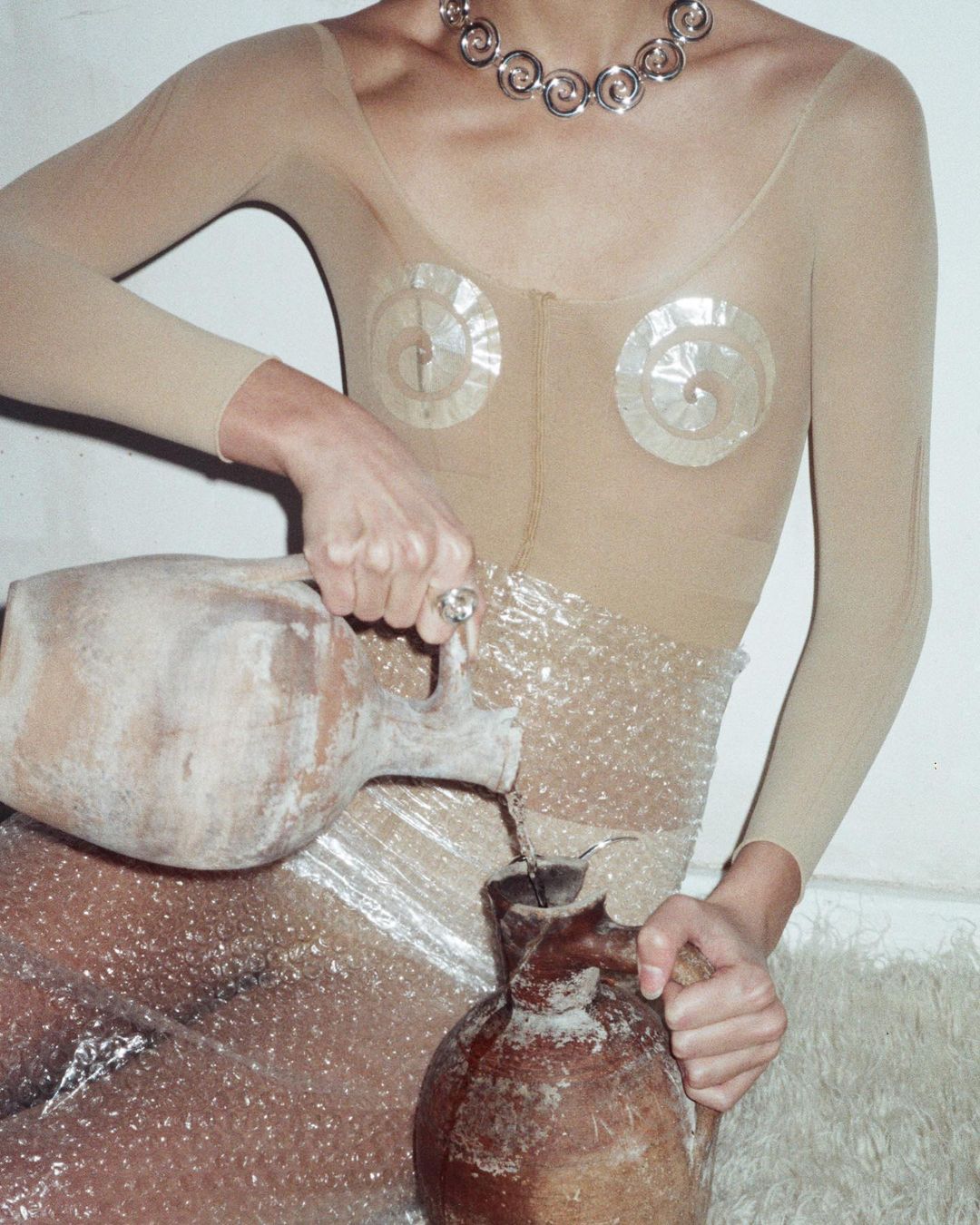 人們總說作風散漫另類的第比利斯是當代藝術家的天堂,而 Le Chic Radical 便是於2018年由當地志同道合的 Giorgi Wazo5wski 和 Nina Ivanovna 所成立。他們的靈感來源於別緻精緻的1990年代女性,性感的法國風情與現代感的結合可從作品中顯然可見。每件首飾都是手工制作,利用純銀作為主要金屬,並以珍珠和中檔寶石作為點綴來中和金屬所帶來的粗獷和提升首飾的輪廓感。