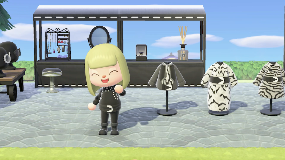 「NET-A-PORTER島上的《動物森友會》中創造了第一套虛擬人物服裝;我們很喜歡這樣的方式,讓島民可以在遊戲中嘗試時尚服裝。這個系列之所以有趣又迷人,不失多變的功能,是因為其具有時尚宣言的連身裙和上衣可以與牛仔褲搭配,而完美永峻的西裝外套更是衣櫥中必備的款式。」Net-a-Porter 資深市場編輯 Libby Page 對首次推出的虛擬服裝而感到興奮不已。
