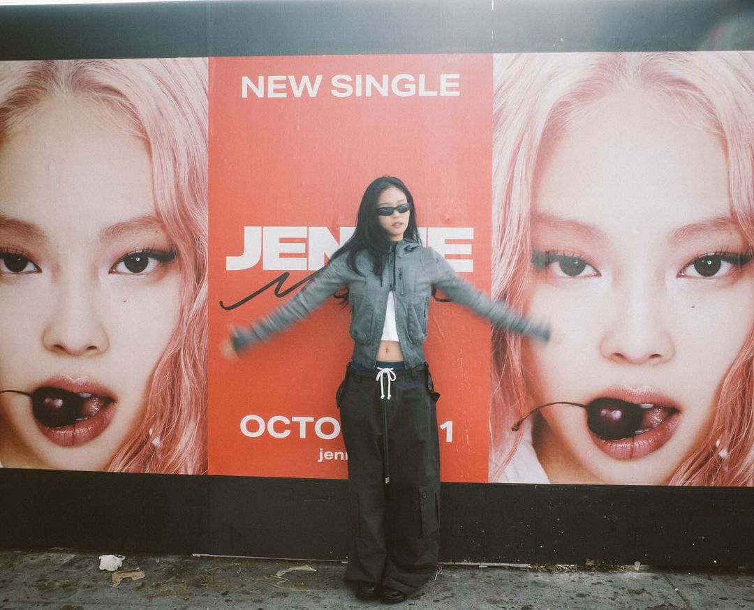 本月Jennie前往錄製節目「Jimmy Kimmel Live!」時,她以一身街頭感十足的造型亮相,穿着Cerric的深灰色Cargo Pants,並疊穿藍色棉質運動褲,增添層次感和勾勒身材比例。此外,她還穿着Jean Paul Gaultier白色T-Shirt和黑色厚底鞋完成造型,完美詮釋「Pretty Girl」的個性態度。