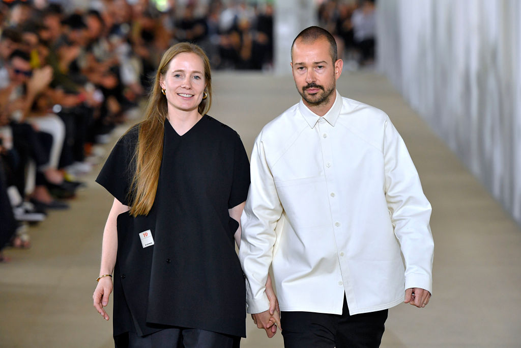 PARIS, FRANCE - JUNE 21: Fashion designers Luke and Lucie Meier walk the runway at the Jil Sander fashion show during Paris Men's Fashion Week Spring/Summer 2020 on June 21, 2019 in Paris, France. (Photo by Victor VIRGILE/Gamma-Rapho via Getty Images)