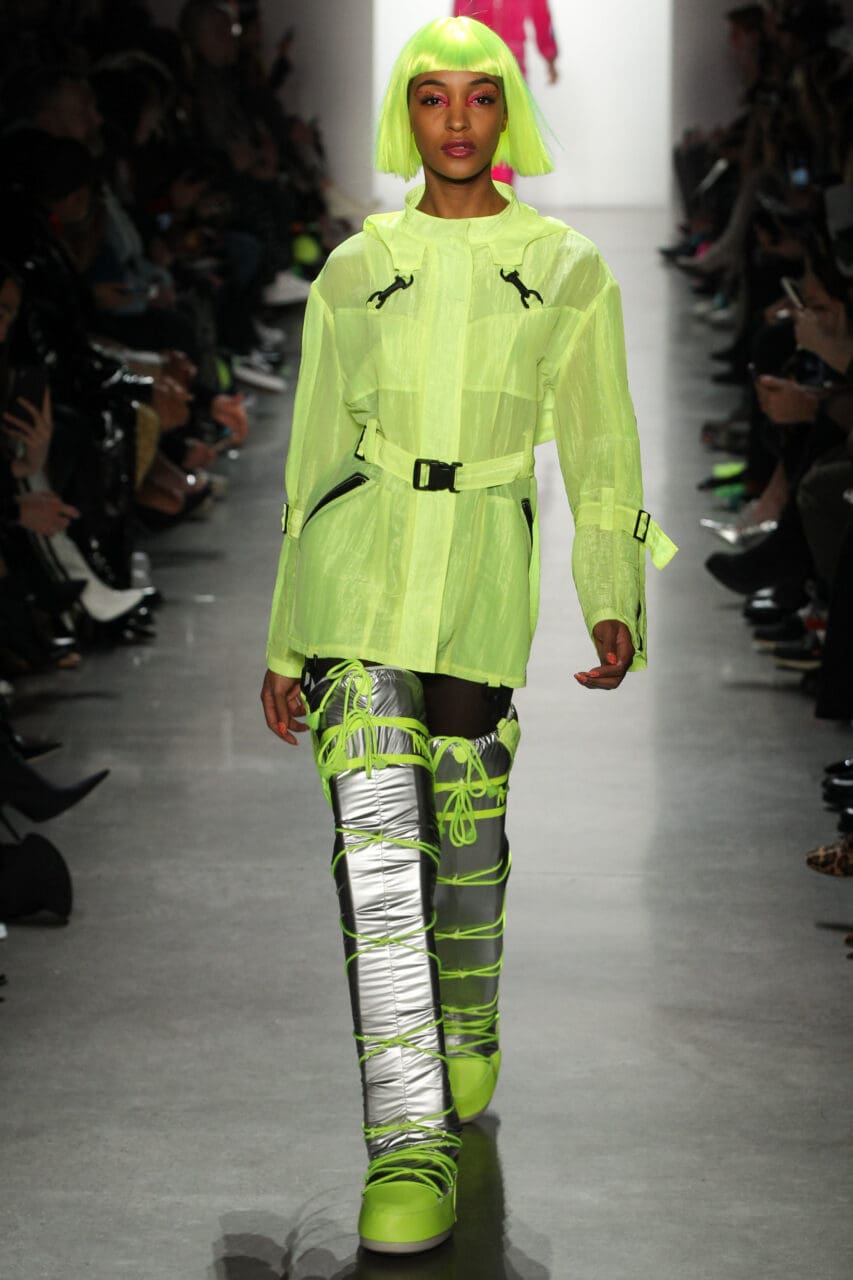 NEW YORK, NY - FEBRUARY 08: Jourdan Dunn walks the runway wearing Jeremy Scott Fall 2018 with make up by Kabuki for MAC and hair by Eugene Souleiman for Wella at Spring Studios on February 8, 2018 in New York City. (Photo by Thomas Concordia/WireImage)