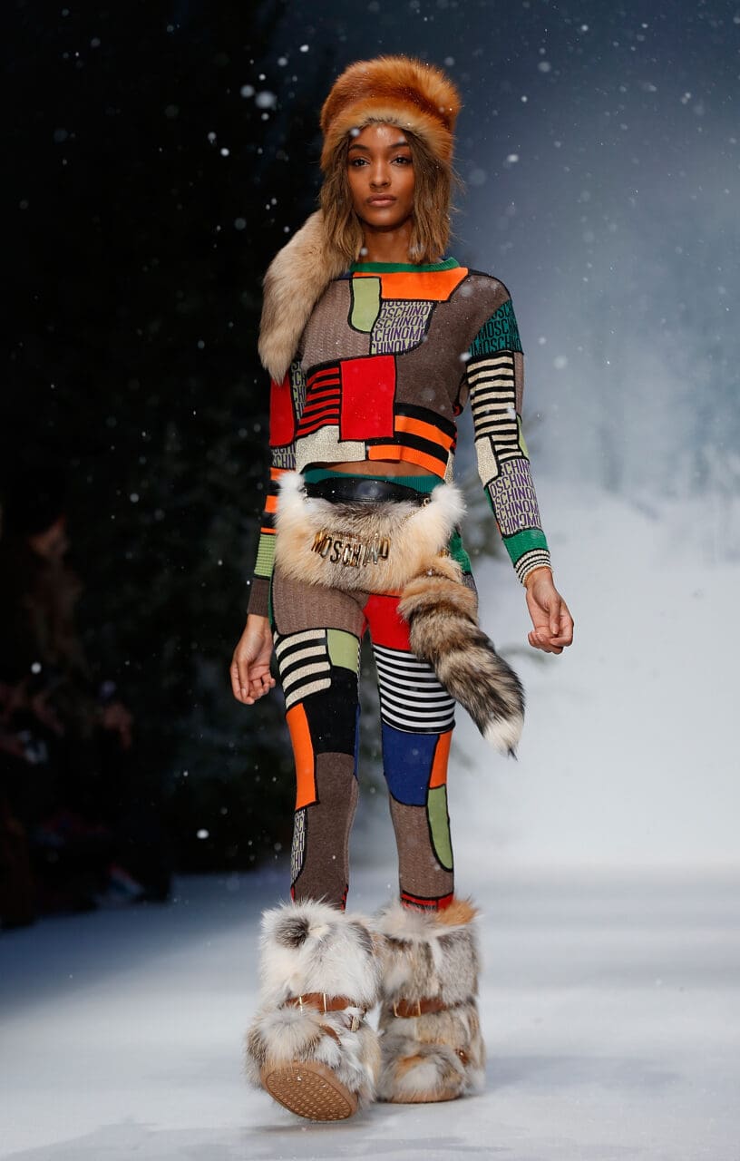 LONDON, ENGLAND - JANUARY 11: Model Jourdan Dunn walks the runway during the Moschino show at the London Collections: Men AW15 at on January 11, 2015 in London, England. (Photo by Tristan Fewings/Getty Images)