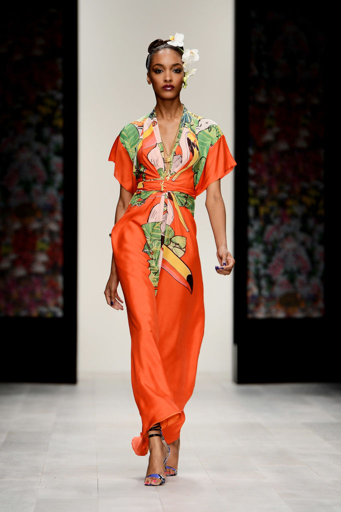 LONDON, ENGLAND - SEPTEMBER 16:Jourdan Dunn walks the runway at the Richard Quinn show during London Fashion Week September 2023 at the Andaz Hotel on September 16, 2023 in London, England. (Photo by Mike Marsland/WireImage)