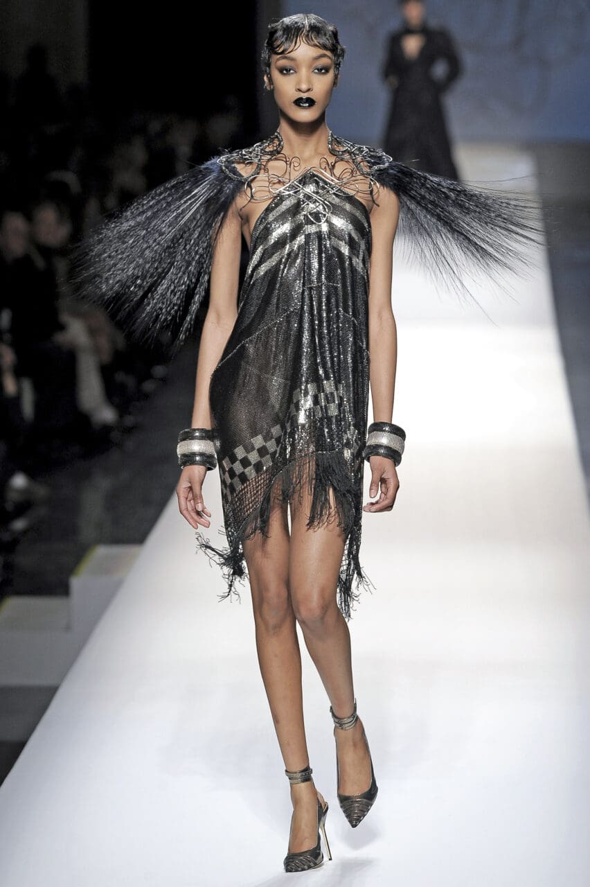 PARIS, FRANCE - JANUARY 28: Jourdan Dunn walks the runway during the Jean Paul Gaultier Haute Couture Spring/Summer 2009 fashion show as part of the Paris Haute Couture Fashion Week on January 28, 2009 in Paris, France. (Photo by Victor VIRGILE/Gamma-Rapho via Getty Images)