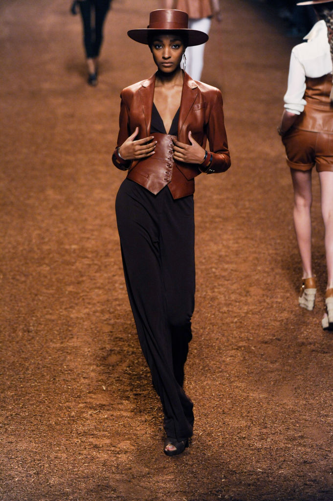 A model on the runway at Hermes' spring 2011 show at Halle Freyssinet. (Photo by Giovanni Giannoni/WWD/Penske Media via Getty Images)