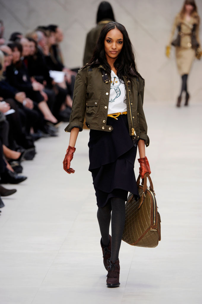 LONDON, ENGLAND - FEBRUARY 18: Model Jourdan Dunn walks the runway at the Burberry Prorsum Autumn Winter 2013 fashion show during London Fashion Week on February 18, 2013 in London, United Kingdom. (Photo by Catwalking/Getty Images)